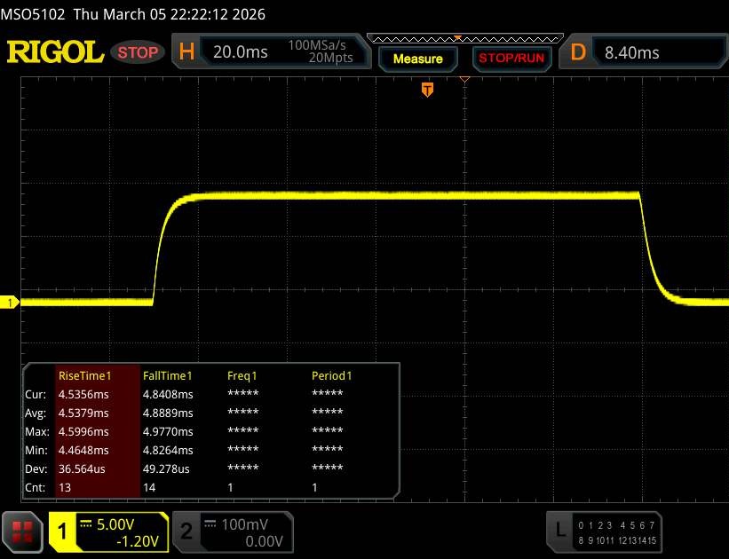 | 9.4 ms ... subida ↗ y bajada ↘ combinada | ↗ 4.5 ms subida | |