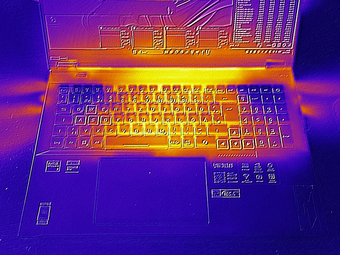 (±) 3: The average temperature for the upper side is 33.8 °C / 93 F, compared to the average of 33.9 °C / 93 F for the class Gaming.