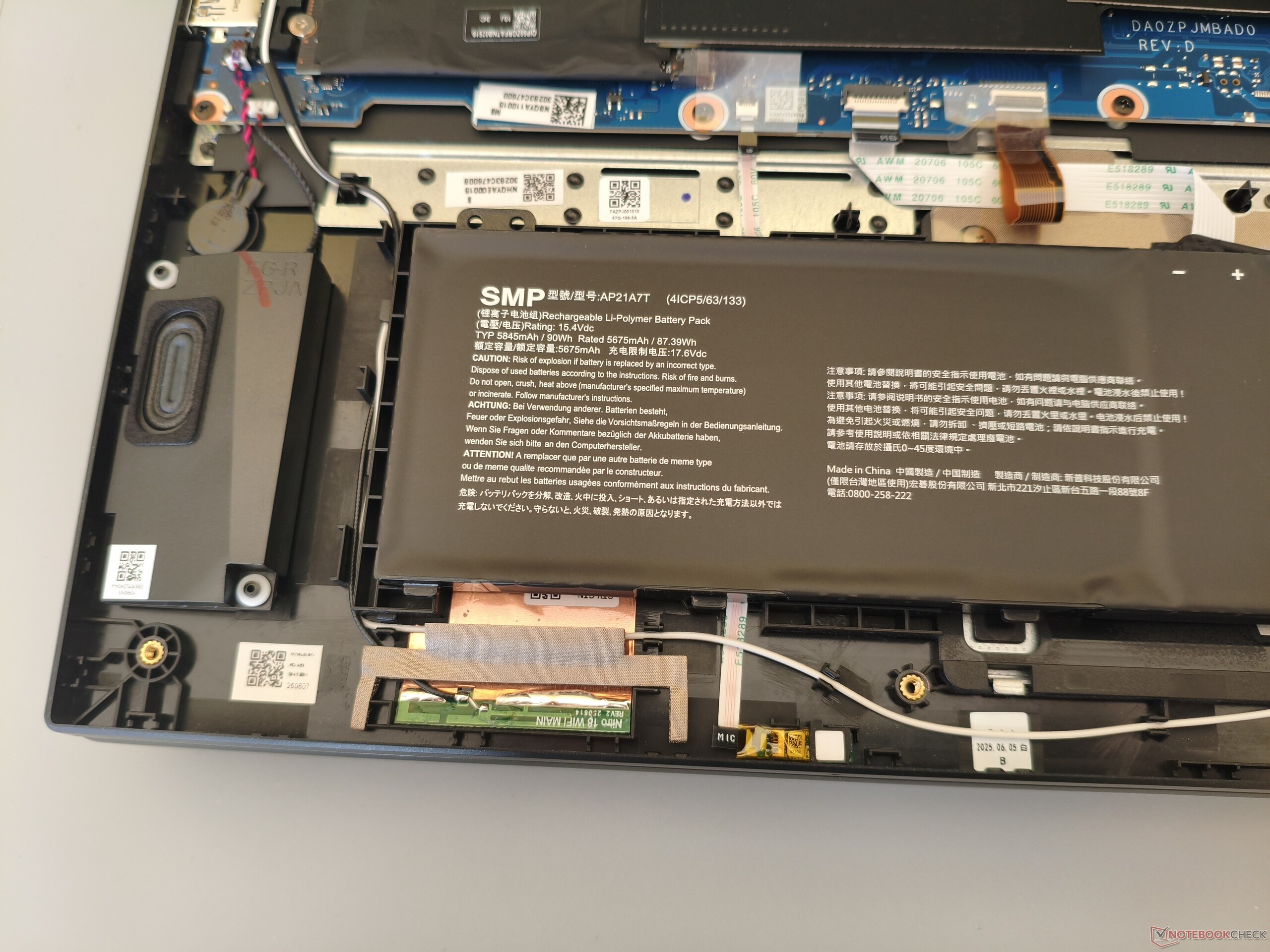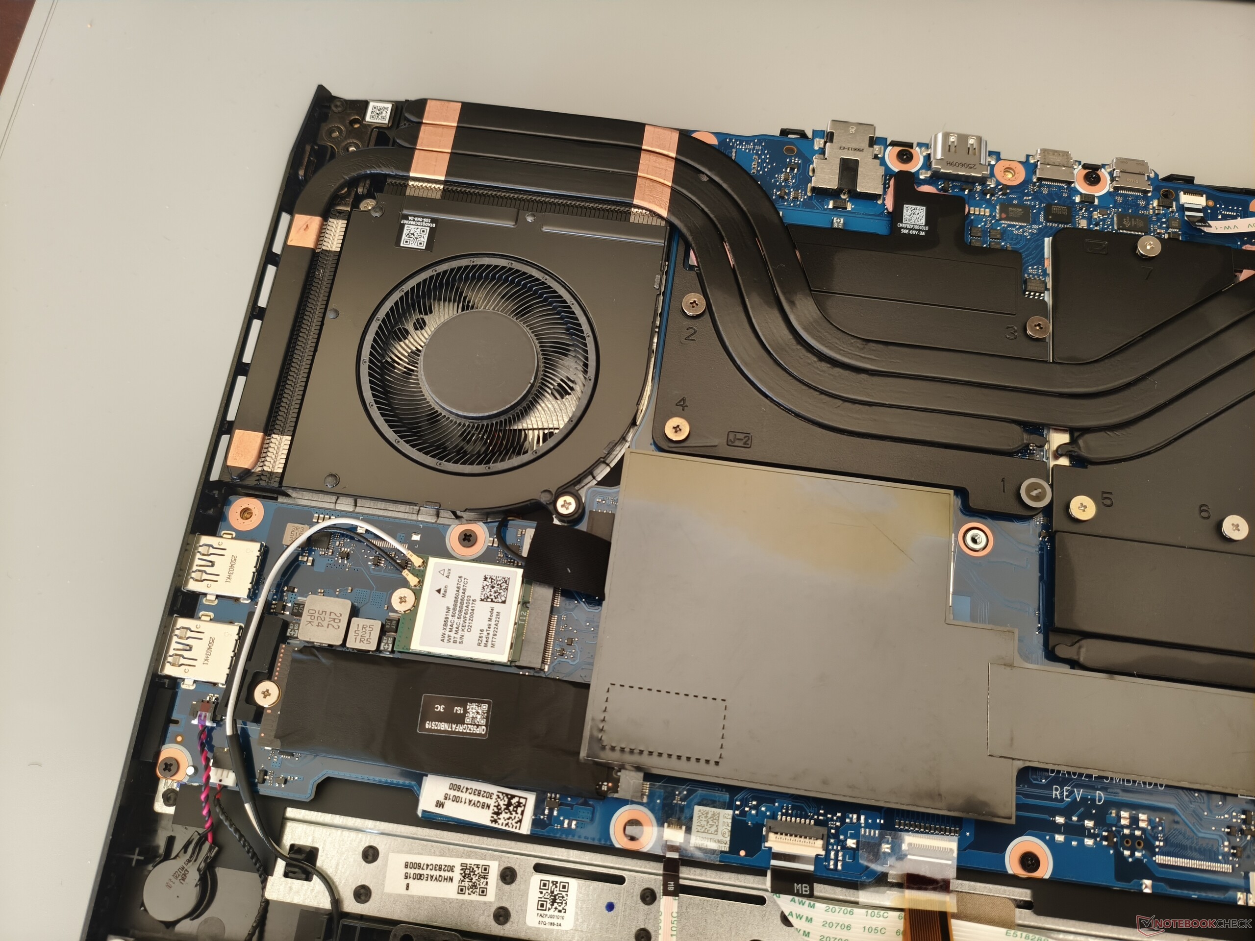 El módulo inalámbrico de MediaTek (Wi-Fi 6E) funciona especialmente bien en términos de recepción. Gracias a su resolución Full HD, la cámara web es algo más nítida que en muchos otros portátiles para juegos, pero sigue sin ser realmente impresionante. Para acceder a su interior, hay que retirar 10 tornillos Phillips. Nuestras imágenes revelan el aspecto que tiene bajo el capó.