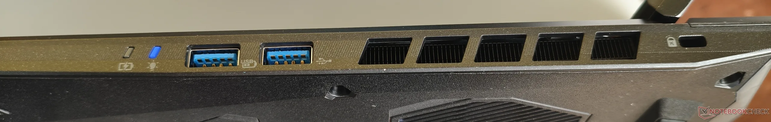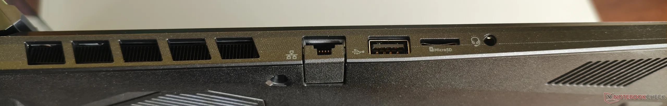 Aunque los compradores tienen que prescindir de Thunderbolt, hay al menos un puerto USB 4 a bordo. En general, el portátil de 18 pulgadas ofrece dos puertos Tipo-C y tres Tipo-A, lo que es suficiente. También hay una toma de audio, una salida HDMI, un lector microSD, un puerto LAN RJ45 y una abertura para candados Kensington.