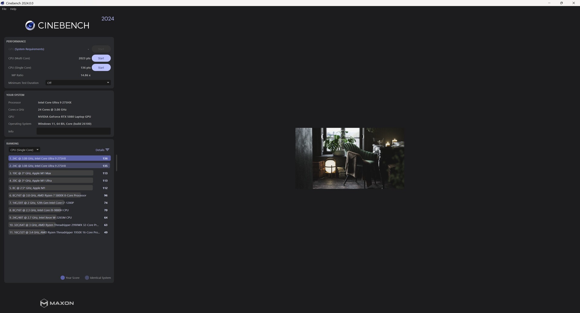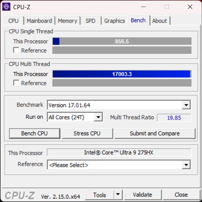 El Intel Core Ultra 9 275HX es uno de los mejores procesadores que Intel ofrece actualmente en el sector móvil. Esto también se demuestra de forma impresionante en nuestros benchmarks de CPU, en los que el Asus ROG NUC 15 tiene un rendimiento excelente. Tanto el rendimiento mononúcleo como el rendimiento multinúcleo son perfectos y no revelan ningún punto débil. Incluso el nuevo y también extremadamente potente AMD Ryzen AI Max+ 395 (en el Bosgame M5) puede ser batido con frecuencia.