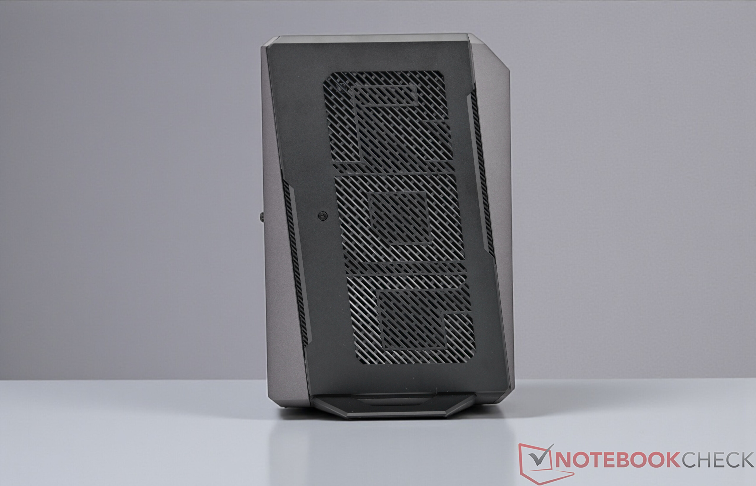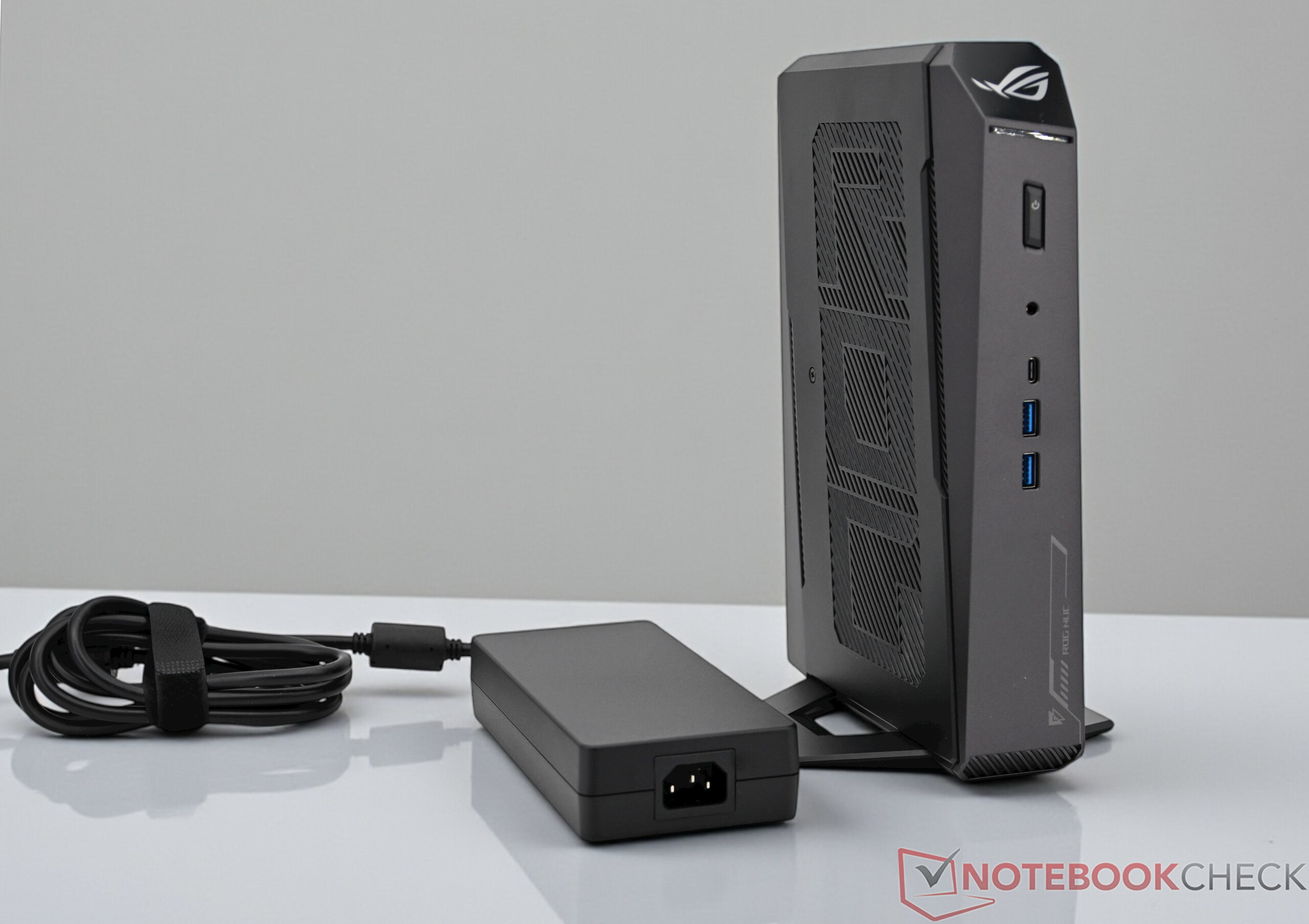 La Asus ROG NUC 15 combina un diseño compacto con una potente refrigeración y una sólida fabricación. Aunque la carcasa es ligeramente más grande, el ROG NUC 15 sigue siendo compacto y flexible. Se puede montar en vertical, lo que también mejora la circulación del aire. El chasis combina plástico en el exterior con metal resistente en el interior, mientras que el logotipo ROG iluminado con Aura Sync aporta acentos. Con unos 3,0 kg, el mini PC es uno de los modelos más pesados, pero aun así ofrece un acertado equilibrio entre rendimiento, diseño y practicidad.