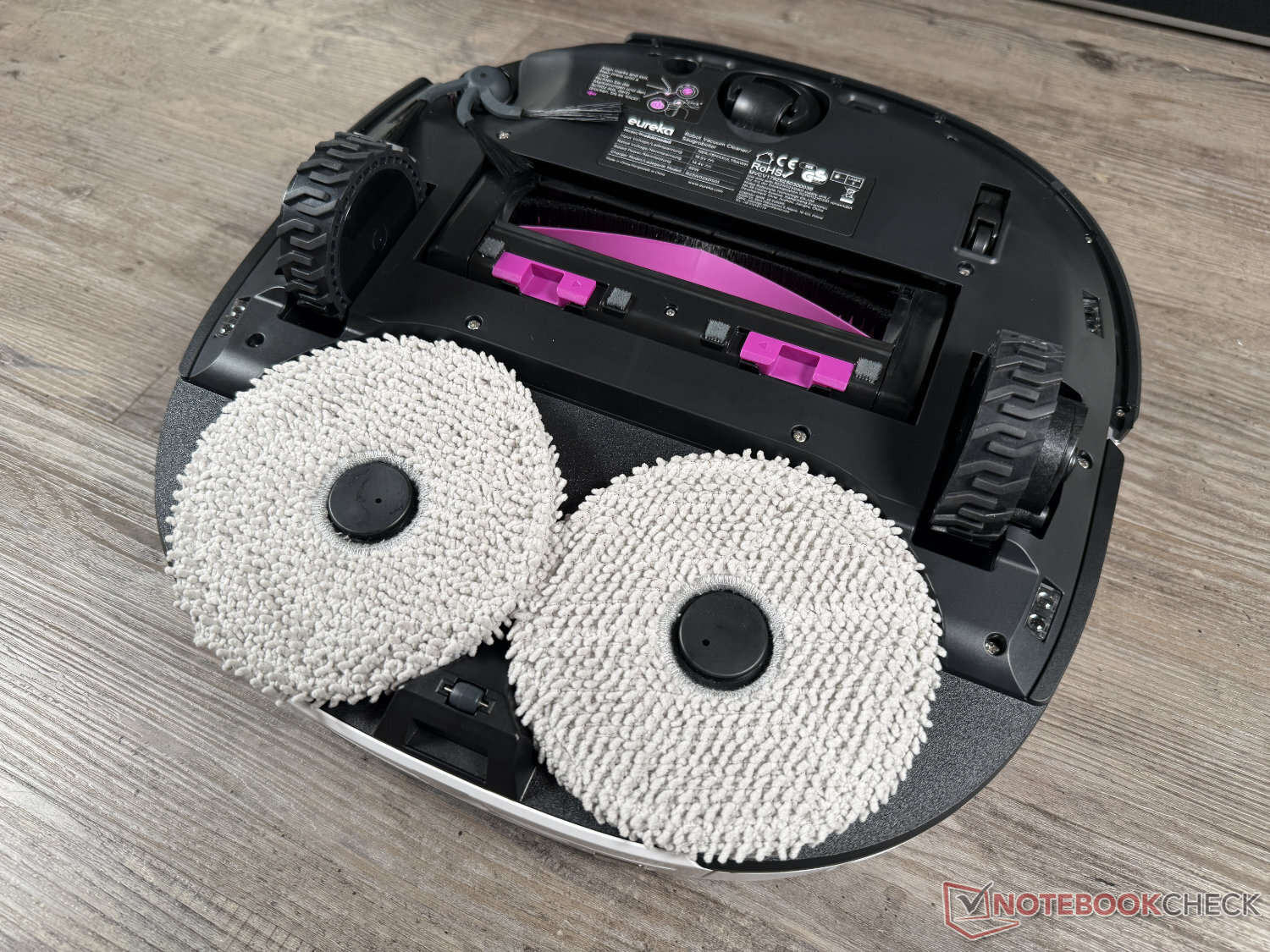 Para fregar, Eureka confía en las dos mopas giratorias establecidas en su modelo insignia. Esta tecnología de fregado ha quedado eclipsada por el rodillo de fregado, que ahora se utiliza incluso en muchos robots aspiradores de gama media significativamente más baratos y nuevos, como el Ecovacs Deebot T90 Pro Omni o el Rodillo Mova S70. La suciedad diaria se recogió en la medida de lo posible. Sin embargo, como muchos otros modelos con esta tecnología de fregado, el robot llega a sus límites con las manchas secas, incluso tras repetidas limpiezas. Muchos modelos con rodillo de mopa son superiores en este aspecto. El rendimiento es suficiente para la suciedad diaria.