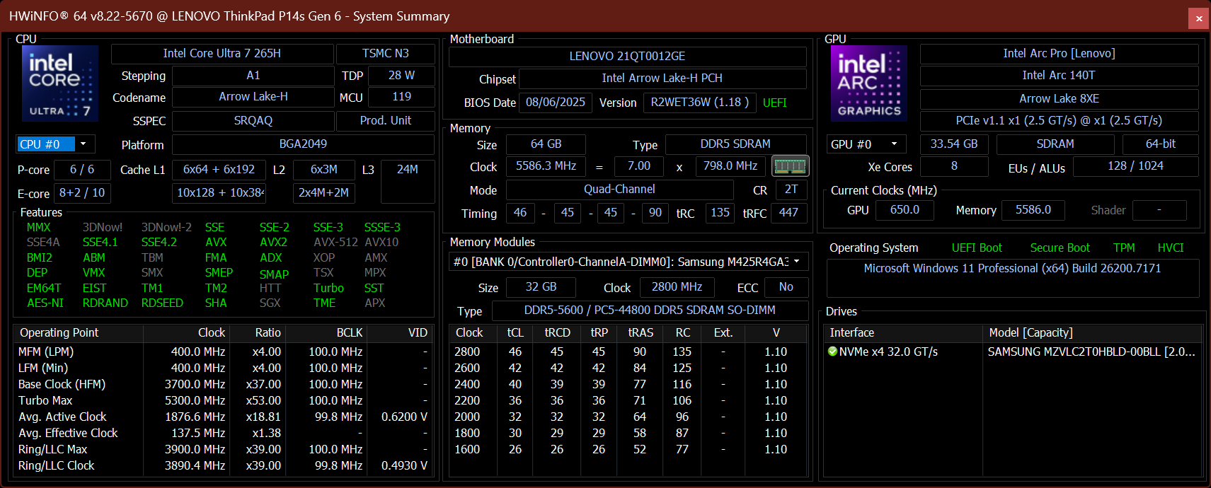 Especificaciones: Intel COre Ultra 7 265H con Nvidia RTX Pro 500 Blackwell Generation