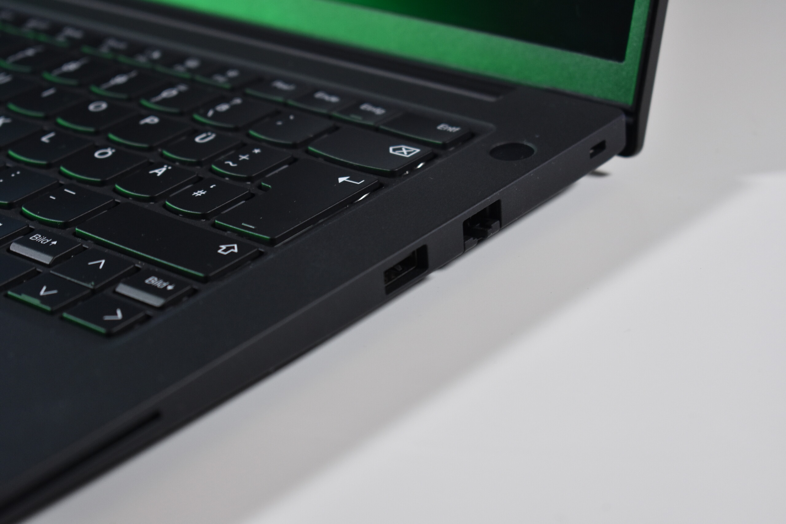 Lenovo no ha cambiado la selección de puertos en comparación con los antiguos P14s Gen 5 Intel - también es idéntica a la P14s Gen 6 AMDa pesar del chasis más grande del P14s G6 Intel. Definitivamente echamos de menos una ranura para tarjetas SD, y un tercer puerto Thunderbolt 4 / USB-C en el lado derecho del chasis también sería de agradecer.