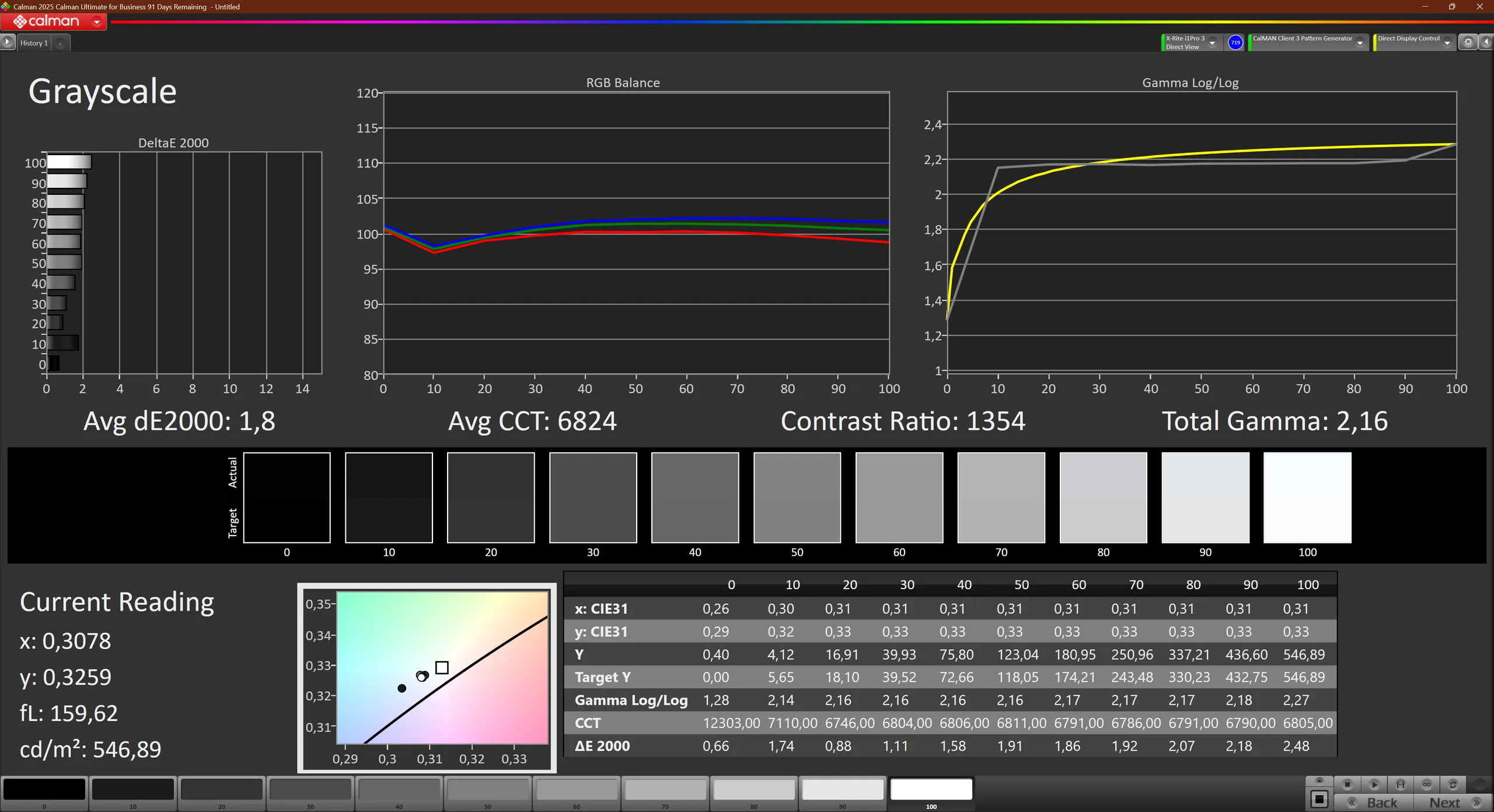 ΔE Greyscale Calman: 1.8 | ∀{0.09-98 Ø5}
