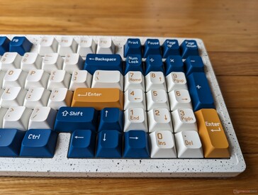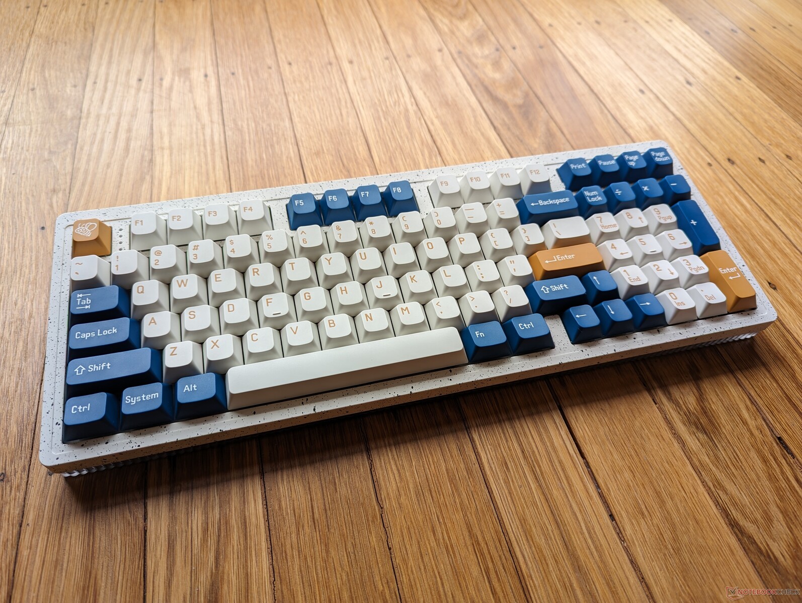 Al sacarlo de la caja, el teclado Modern97 pesa 1,0 kg para su tamaño, lo que contribuye a su sólida calidad de construcción y a su firme experiencia de escritura. El plástico ABS con puntos de tinta en la parte superior y la carcasa transparente mate roscada en la parte inferior añaden mucho carácter al diseño que los usuarios apreciarán. Hay disponible una segunda variante con tonos más oscuros y grises para contrastar con los colores más brillantes y azules de nuestra unidad de prueba.
