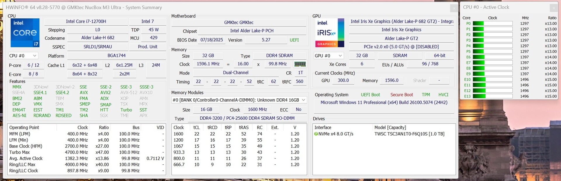 GMK NucBox M3 Ultra Intel Core i7-12700H ⎘ Intel Iris Xe Graphics G7 96EUs ⎘ 32 GB Memoría, 1024 GB SSD | Amazon: $609.99 Precio de catálogo: 429€ | 437 g | 106 x 114 x 42.5 mm | |
