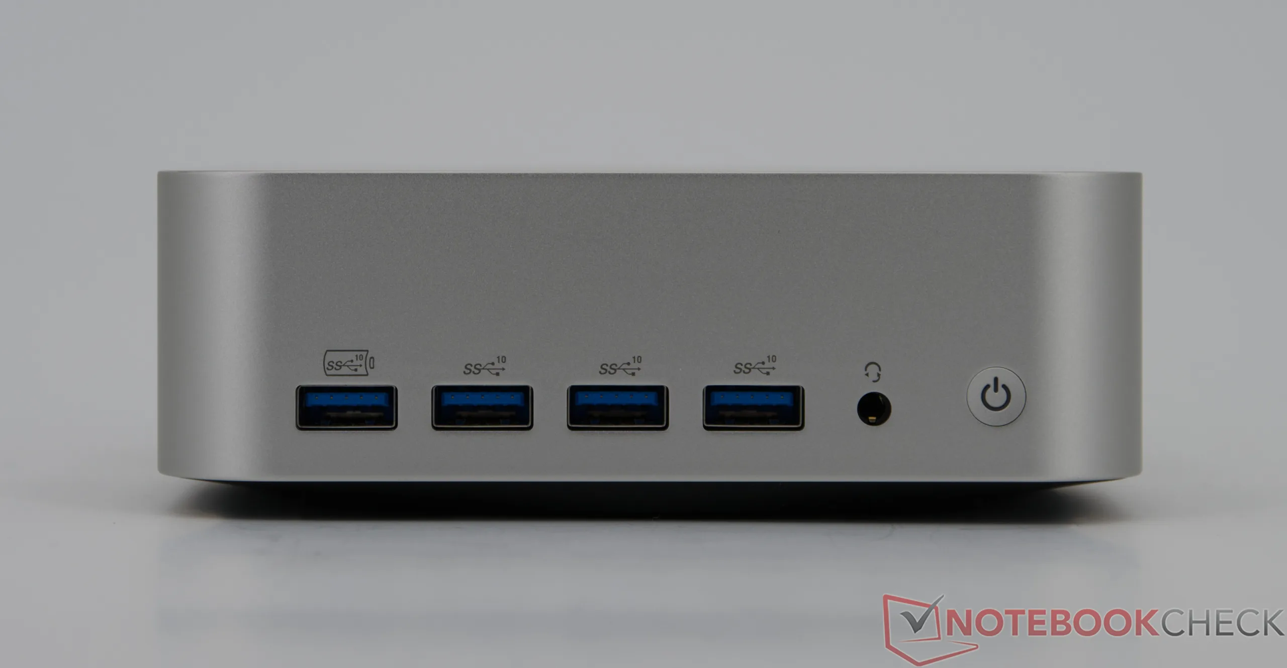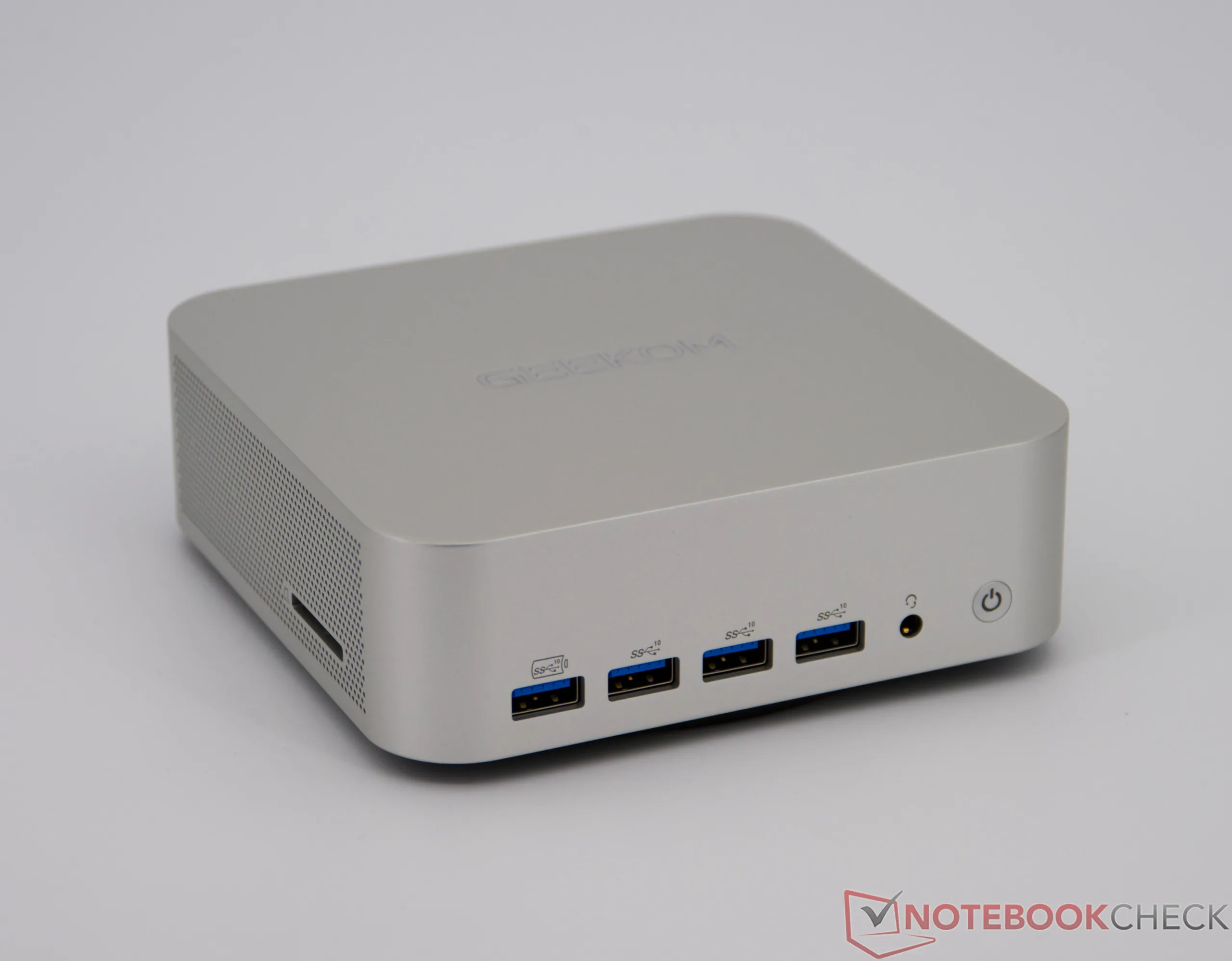 Externamente, Geekom se mantiene fiel a su conocido lenguaje de diseño. La carcasa de aluminio de alta calidad es compacta pero ofrece espacio suficiente para una amplia conectividad. Además de varios puertos USB, dispone de modernas interfaces USB4, salidas HDMI y un lector de tarjetas, lo que permite integrar el mini PC de forma flexible en las configuraciones existentes.