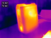 Debido a la selección de materiales, la carcasa del Ace Magician AM08 Pro no se calienta demasiado. Vemos las temperaturas más altas en la zona de las rejillas de ventilación, que era de esperar. Los dos ventiladores son capaces de mantener el SoC constantemente a un buen nivel de rendimiento en el modo Rendimiento, como ya vimos en nuestra prueba del bucle Cinebench R15 Multi. Durante el test de estrés, observamos valores similares en términos de temperaturas. Medimos un máximo de 86.7 °C durante el test de carga Prime95. El SoC podría haber aguantado algo más de calor aquí, ya que AMD especifica un tJMax de 95 °C para el AMD Ryzen 9 6900HX. Con eso, el dispositivo habría podido funcionar más silenciosamente en modo Rendimiento. Debido al TDP ralentizado, vemos temperaturas significativamente inferiores en los otros modos.