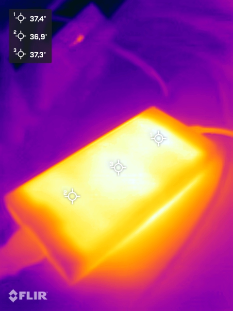 (+) En reposo, la temperatura media de la parte superior es de 26 °C / 79# F, frente a la media del dispositivo de 29.5 °C / 85 F.
