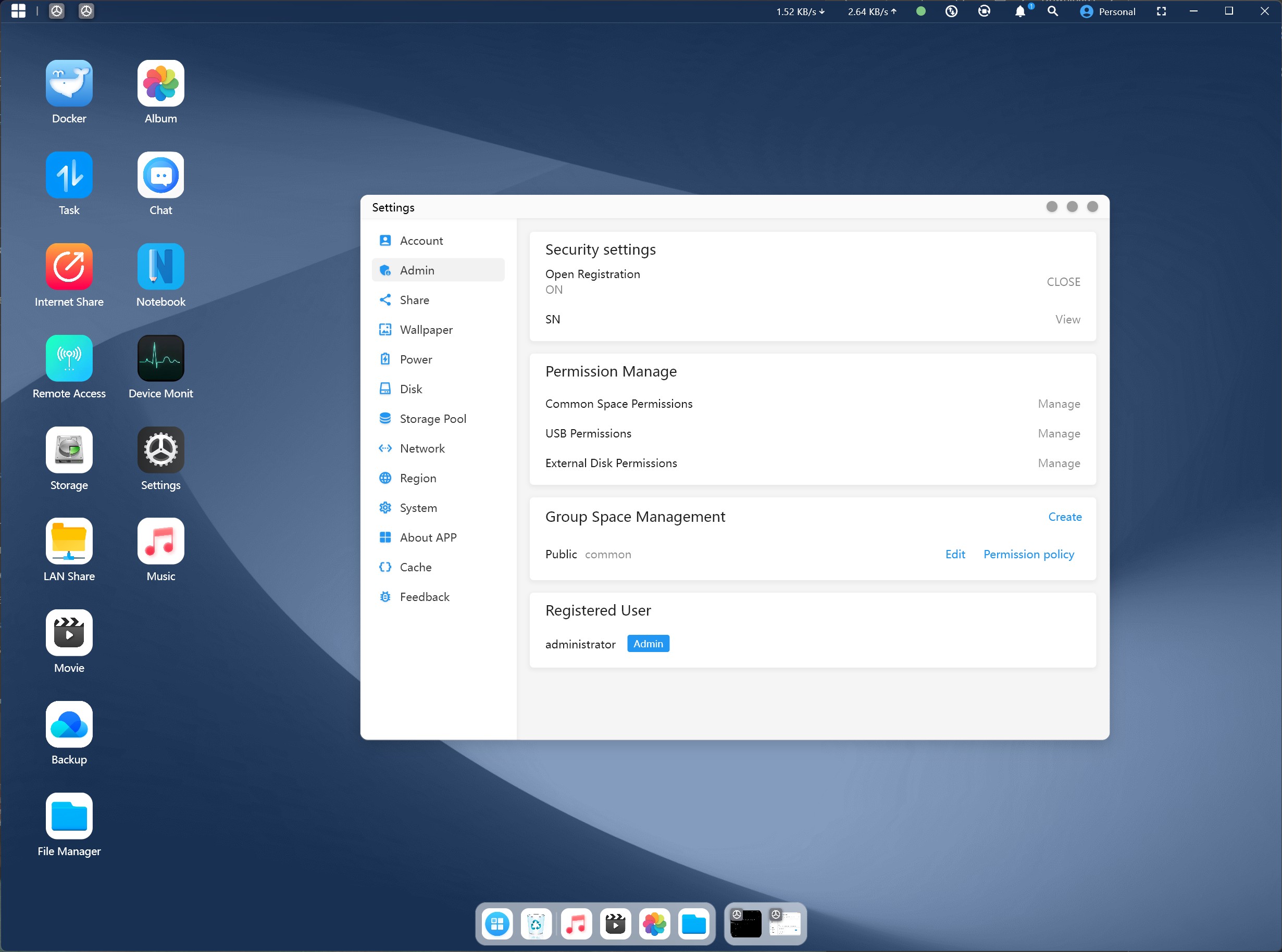 Minisforum incluye una amplia selección de accesorios en el volumen de suministro. Entre ellos se incluye una placa adaptadora para instalar unidades SSD U.2, una potente fuente de alimentación de 280 vatios y los cables de conexión necesarios para poner en marcha el dispositivo de inmediato. Minisforum también suministra un sistema operativo especialmente desarrollado, el MinisCloud OS. El enfoque es bueno para integrar el NAS en su red. Algunos programas ya están preinstalados, y con la opción de integrar contenedores Docker, casi todas las posibilidades están abiertas.