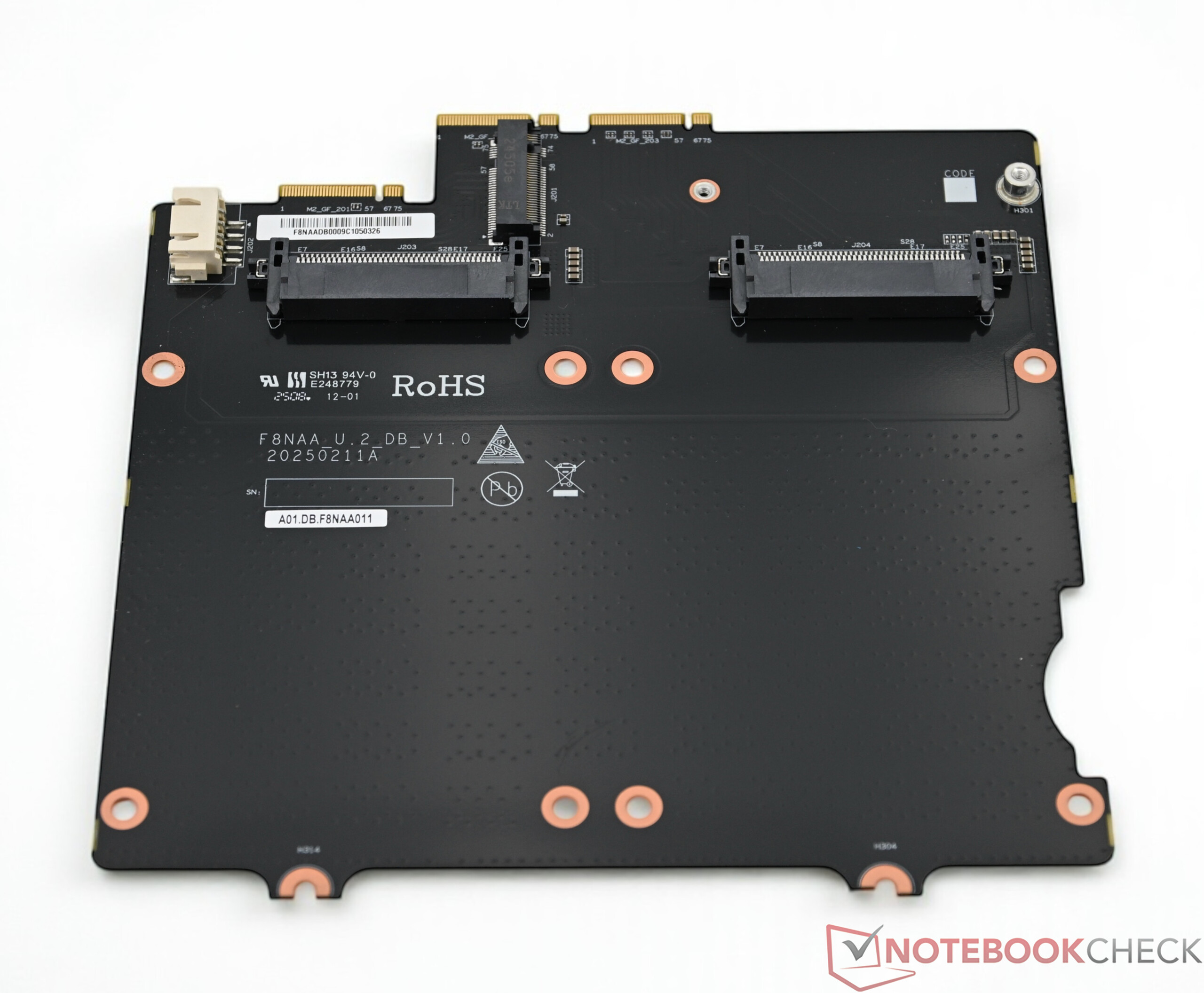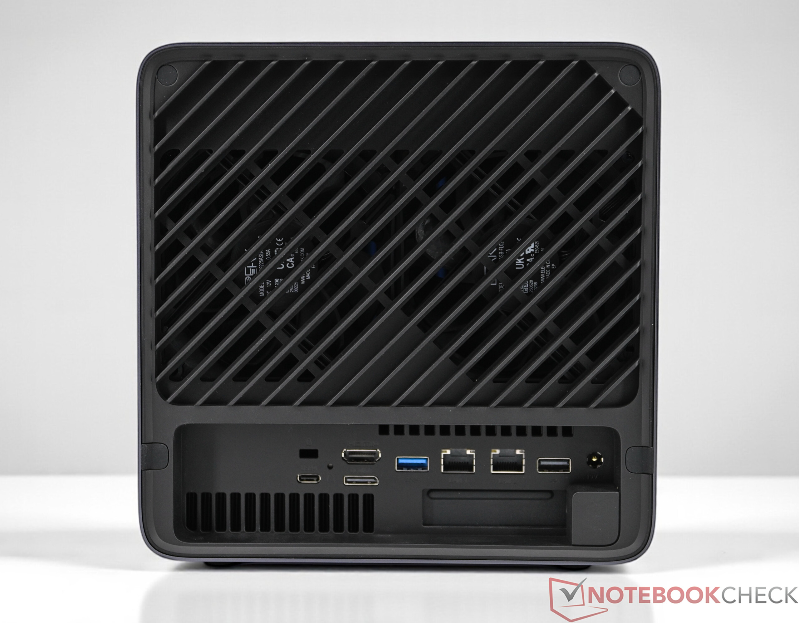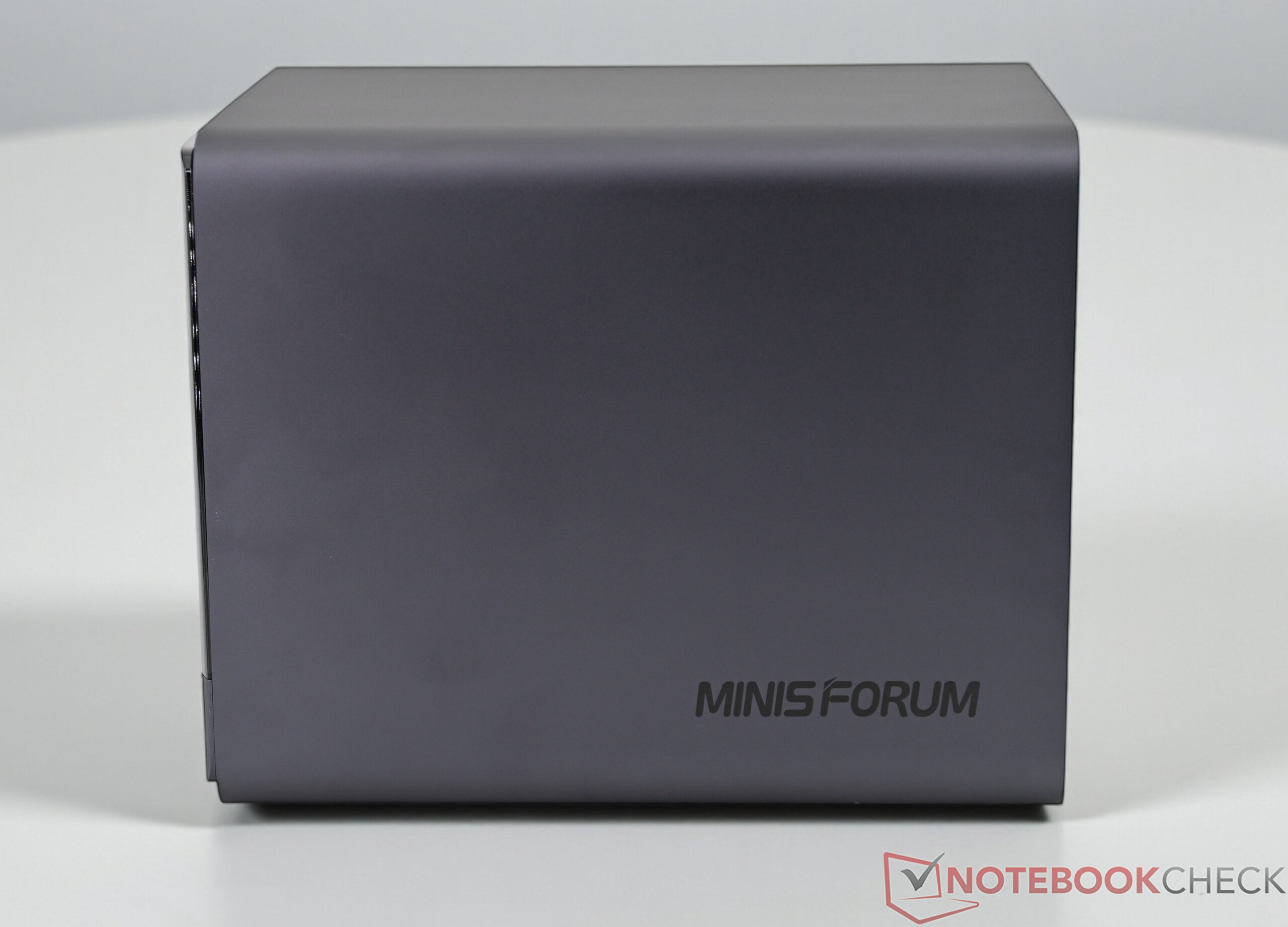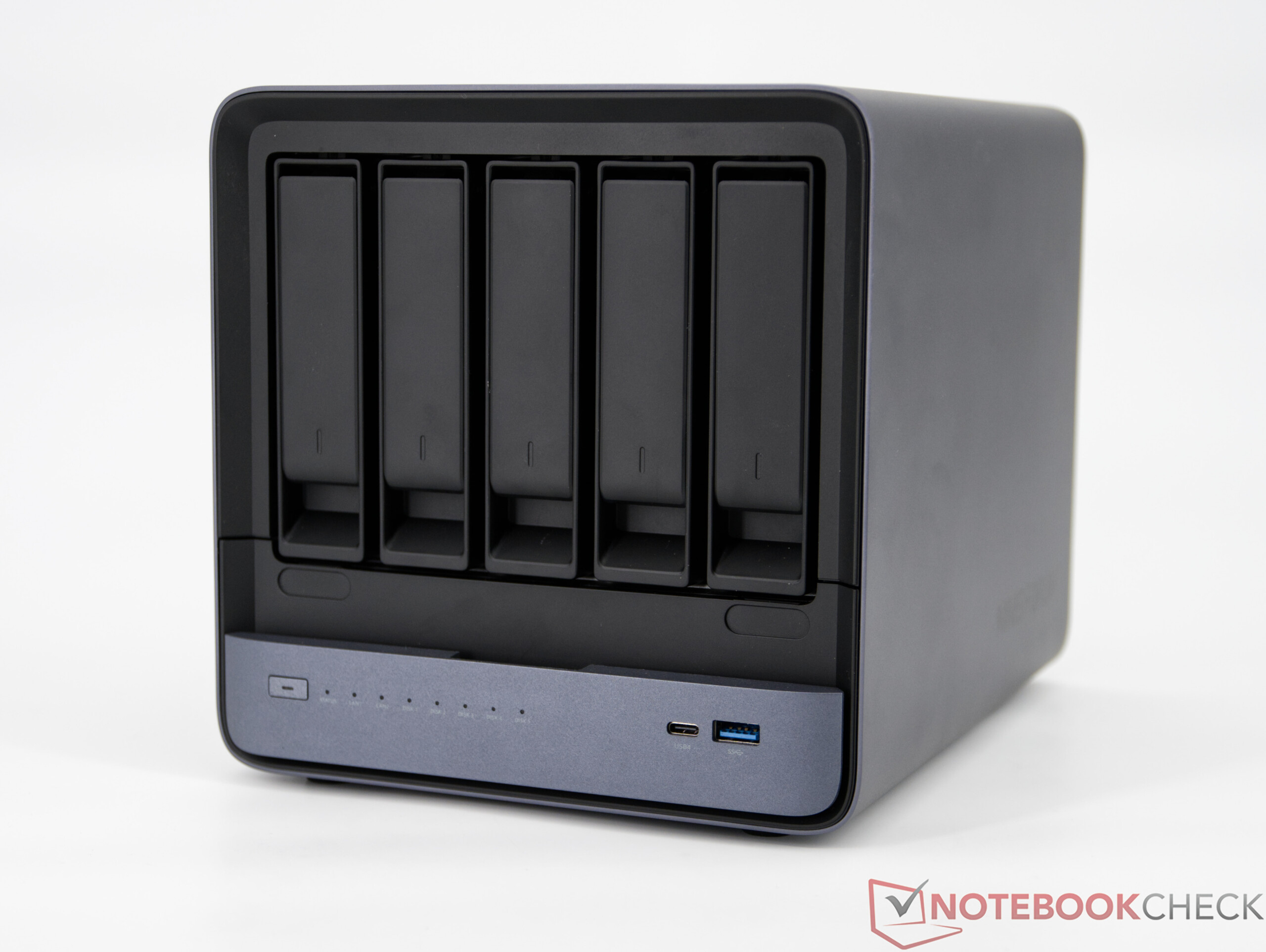 El Minisforum N5 Pro está fabricado en su mayor parte en metal, complementado por unos pocos elementos de plástico que dan una impresión de gran calidad tanto visualmente como al tacto. Un pequeño punto de crítica se refiere al panel frontal brillante, que es susceptible a las huellas dactilares y puede perder su aspecto con el tiempo debido a finos arañazos. En cuanto a características, el Minisforum N5 Pro no tiene nada que ocultar. El NAS puede alojar un total de cinco discos duros de 3,5" y tres unidades SSD. Gracias a las numerosas interfaces externas, el NAS ofrece una amplia gama de opciones de ampliación y conexión. La conexión de red está especialmente lograda, con dos puertos LAN rápidos (1 × 10 Gbit, 1 × 5 Gbit) que permiten una velocidad de transferencia de datos y una fiabilidad excepcionalmente altas. También nos gustaría mencionar la conexión OCuLink y la ranura PCIe x16 interna, que permite equipar el sistema con tarjetas gráficas dedicadas, por ejemplo.