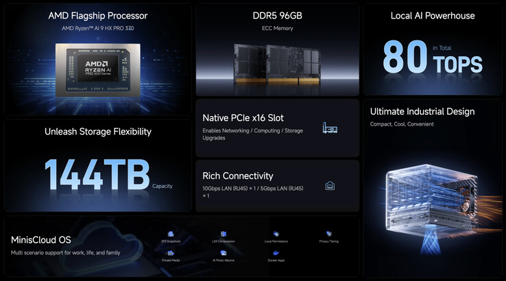 De momento, Minisforum ha confirmado que los N5 y N5 Pro estarán disponibles con hasta el procesador AMD Ryzen AI 9 HX 370 APU y 96 GB de memoria RAM DDR5 EEC SO-DIMM, o 128 GB "extraoficialmente". No sólo eso, sino que un representante de la compañía señaló en el siguiente vídeo que se puede añadir una GPU discreta a través de una ranura PCIe x16 (PCIe 4.0 x4) o OCuLink.