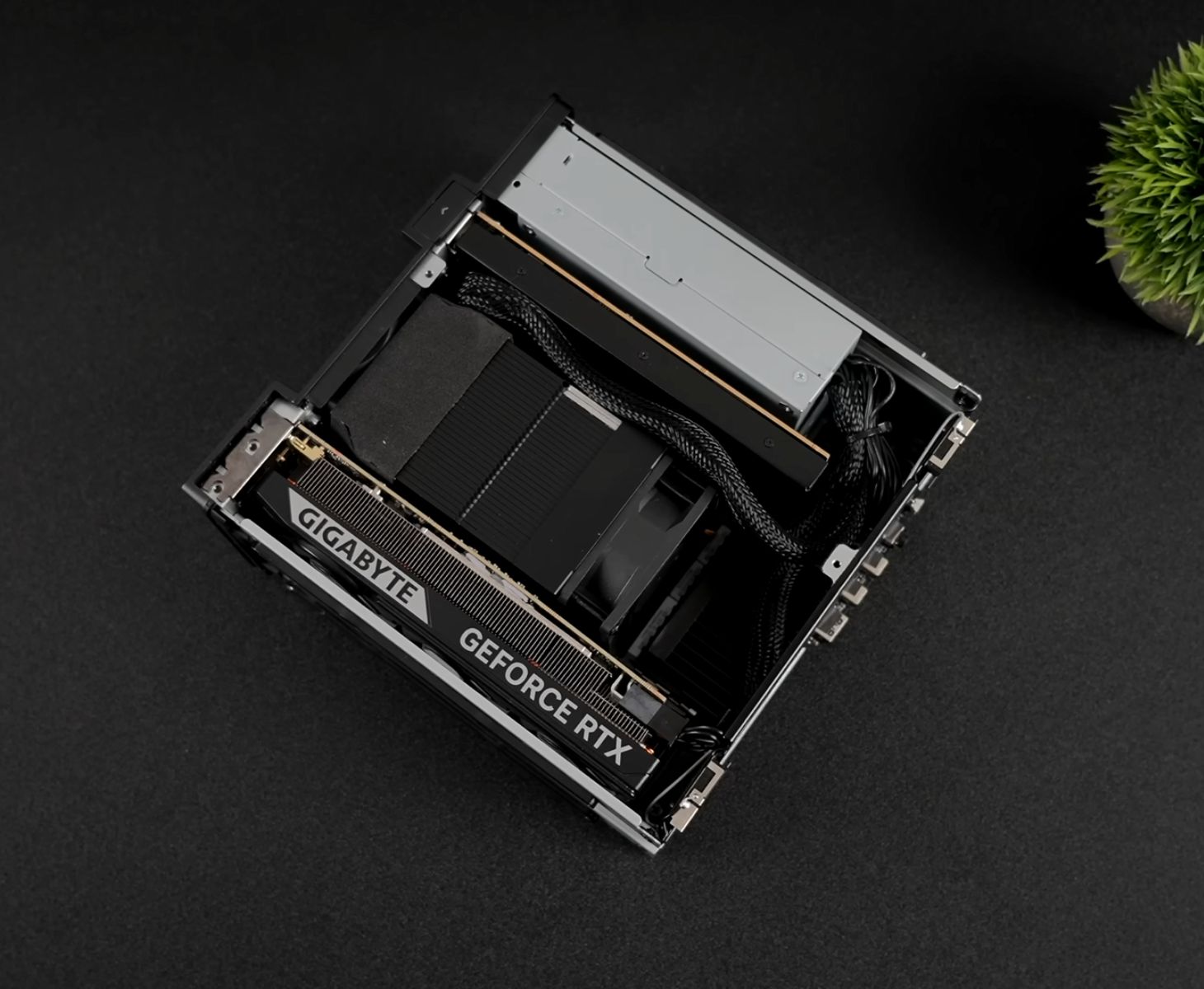 El YouTuber comienza el video con un desmontaje de la MS-02 Ultra, que dicen es sorprendentemente fácil, la eliminación de sólo dos tornillos permite que el marco interno se deslice hacia fuera. En el interior, el refrigerador de la CPU y la fuente de alimentación de 350 W ocupan la mayor parte del espacio, dejando sólo espacio suficiente para una GPU de perfil bajo, y como se ve en la imagen de arriba, la RTX 5060 LP cabe muy justo.