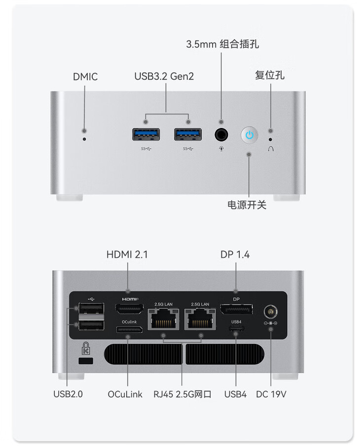 Uno de los aspectos más destacados es la adición de un Puerto OCuLink. Esto hace que el NAB9 Plus sea una mejor elección para juegos cuando se combina con una eGPU. También hay un nuevo puerto USB4, que amplía aún más la compatibilidad con GPU externas. El nuevo mini también tiene un DisplayPort 1.4, que faltaba en el modelo no Plus.