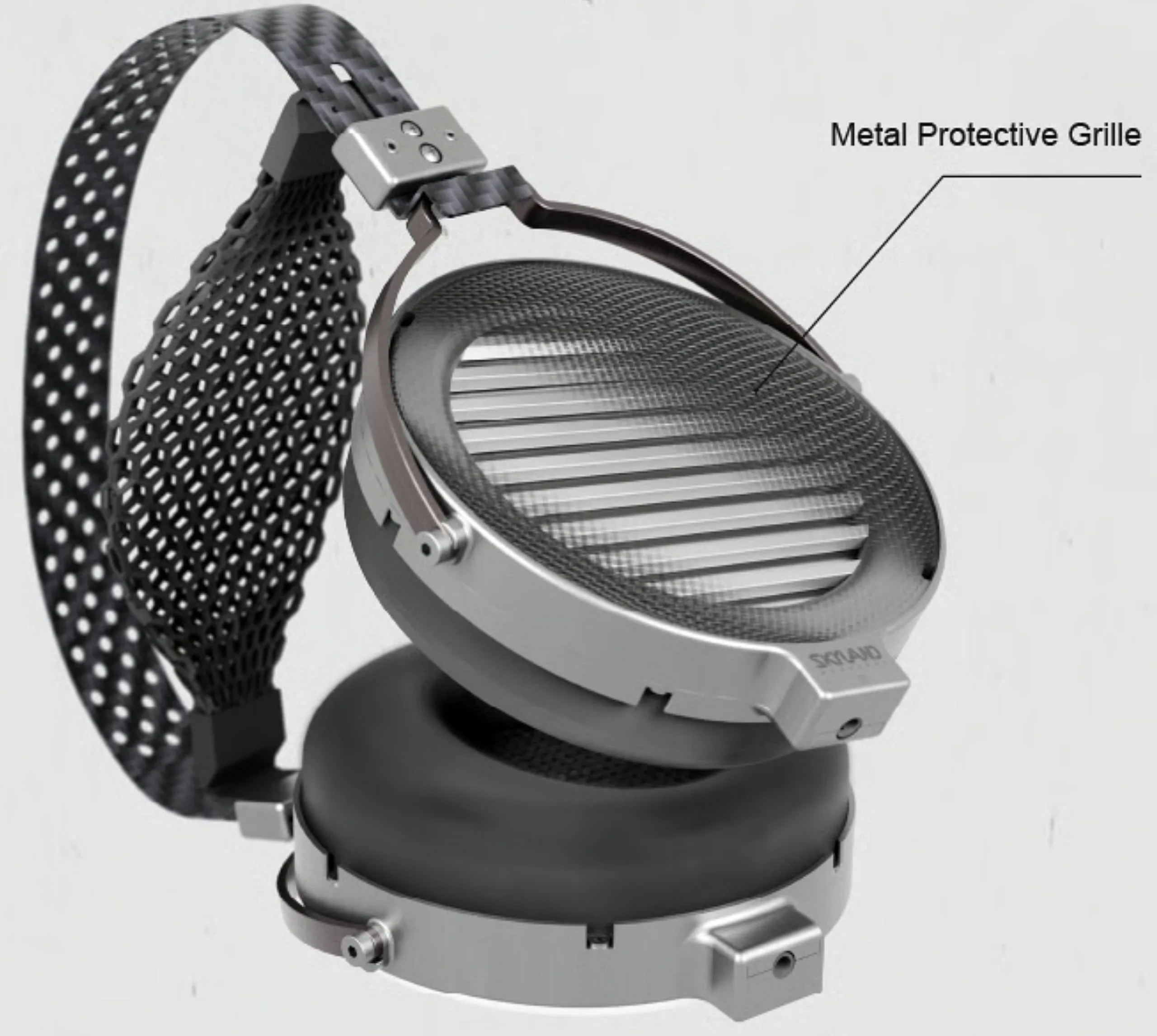 Los transductores se ajustan dentro de unos auriculares de aluminio mecanizado CNC, que vienen con unas suaves almohadillas de piel de cordero y se sujetan a una diadema de fibra de carbono resistente y flexible, con una suave almohadilla flotante de diadema impresa en 3D debajo.
