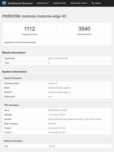 En cualquier caso, el Edge 40 ha aparecido en Geekbench con Android 13 y con lo que parece ser un chipset diferente al que sugerían las filtraciones anteriores. Para recapitular, se rumorea que el Edge 40 contiene el Dimensity 8020, un chipset que aún no ha salido al mercado. Sin embargo, los dos listados de Geekbench indican que el dispositivo lleva un MT6891Z_Z/CZA, un nombre en clave para el antiguo Dimensity 1100.