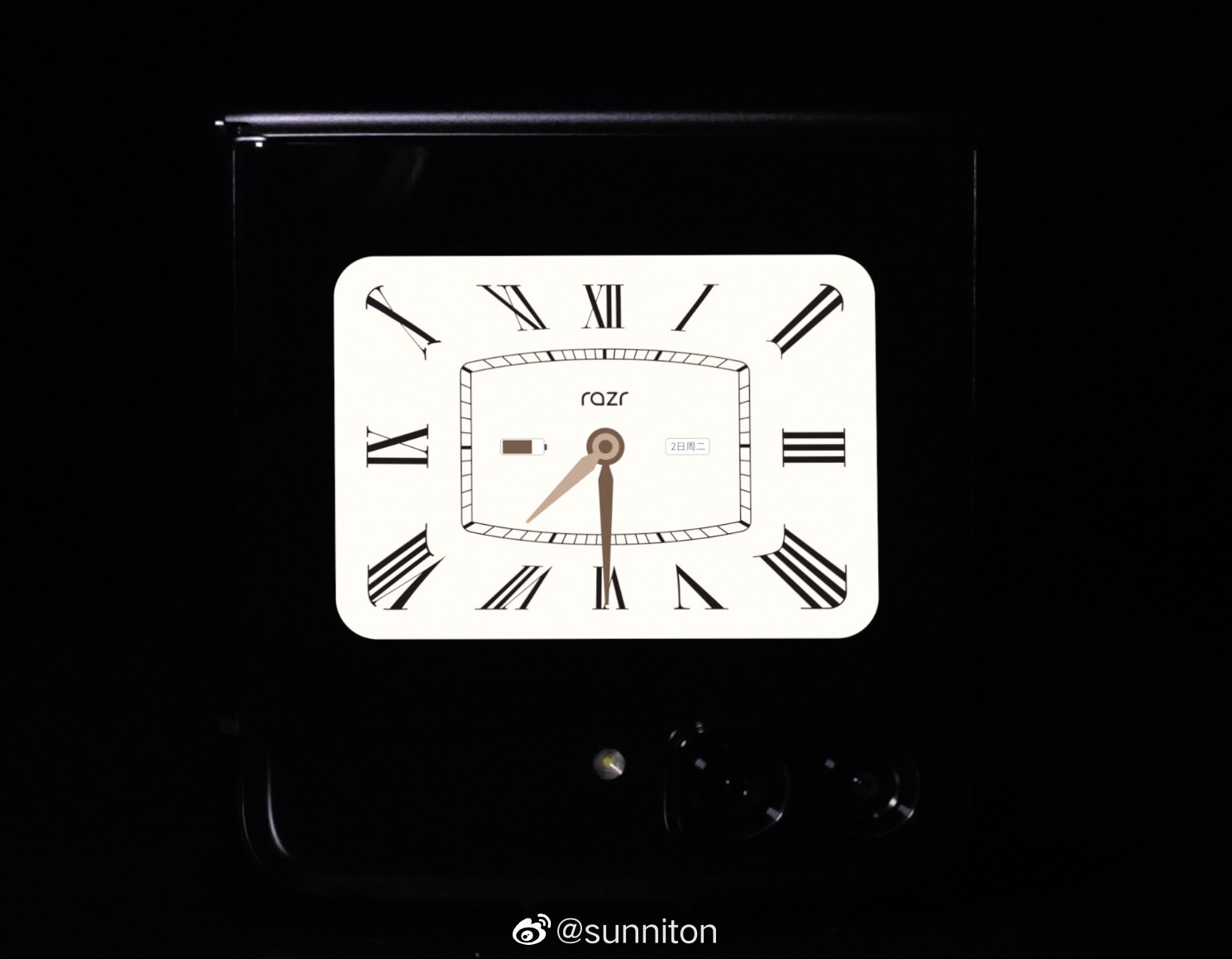 Por un lado, un vídeo destaca la pantalla del dispositivo. Según se dice, la pantalla es de 3 pulgadas y es lo suficientemente grande como para jugar a algunos juegos, lo que no sería posible con elGalaxy Z Flip3. Por cierto, se espera que el Galaxy Z Flip4 cuente con una pantalla de tamaño similar a la de su predecesor. Además, una imagen separada sugiere que el Razr 2022 se enviará con fondos personalizados, como una esfera de reloj con tres complicaciones.