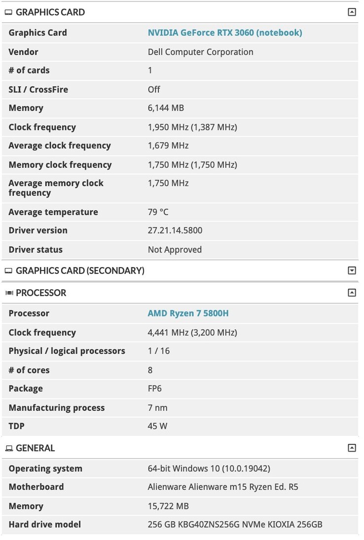 Una de las variantes del Alienware m15 Ryzen Edition R5 parece llevar un procesador AMD Ryzen 9 5900HX y una tarjeta gráfica Nvidia GeForce RTX 3070. Se especuló que la RTX 3070 en cuestión aquí sería la versión Max-P. Por otra parte, las denominaciones Max-P y Max-Q significan poco con las tarjetas Ampere, así que es difícil saber cómo rendirá sin conocer su TGP. El otro modelo Alienware m15 Ryzen Edition R5 lleva una CPU Ryzen 7 5800H y una GeForce RTX 3060. También existe una tercera variante con un Ryzen 7 5800H y GeForce RTX 3070