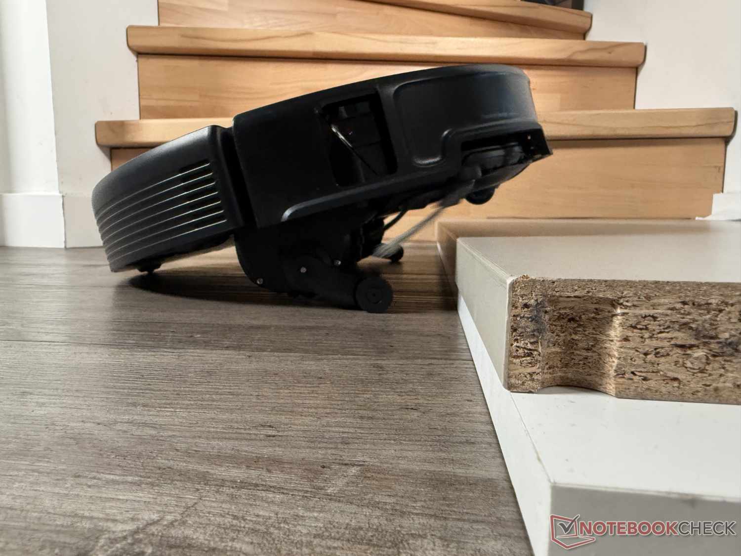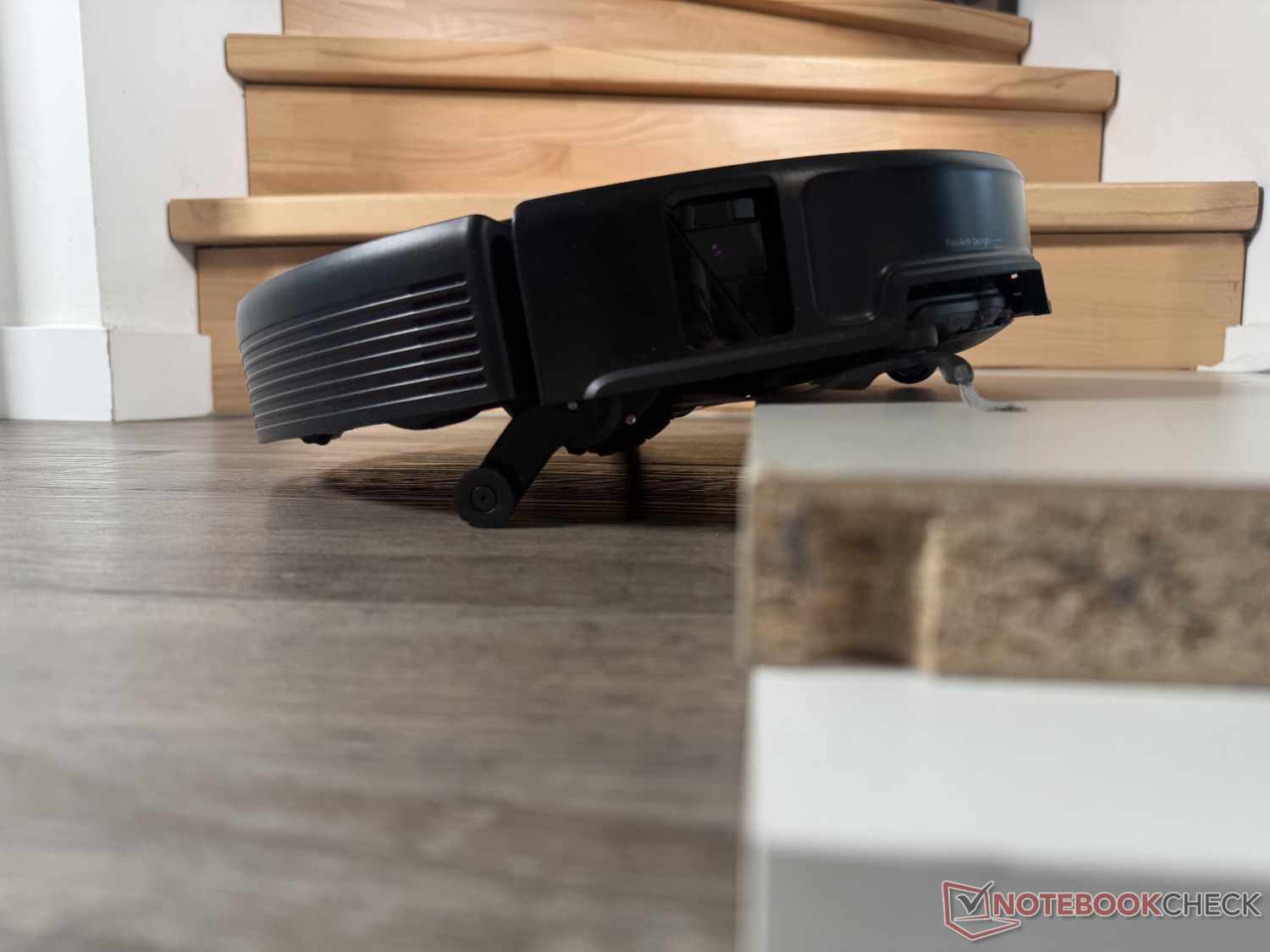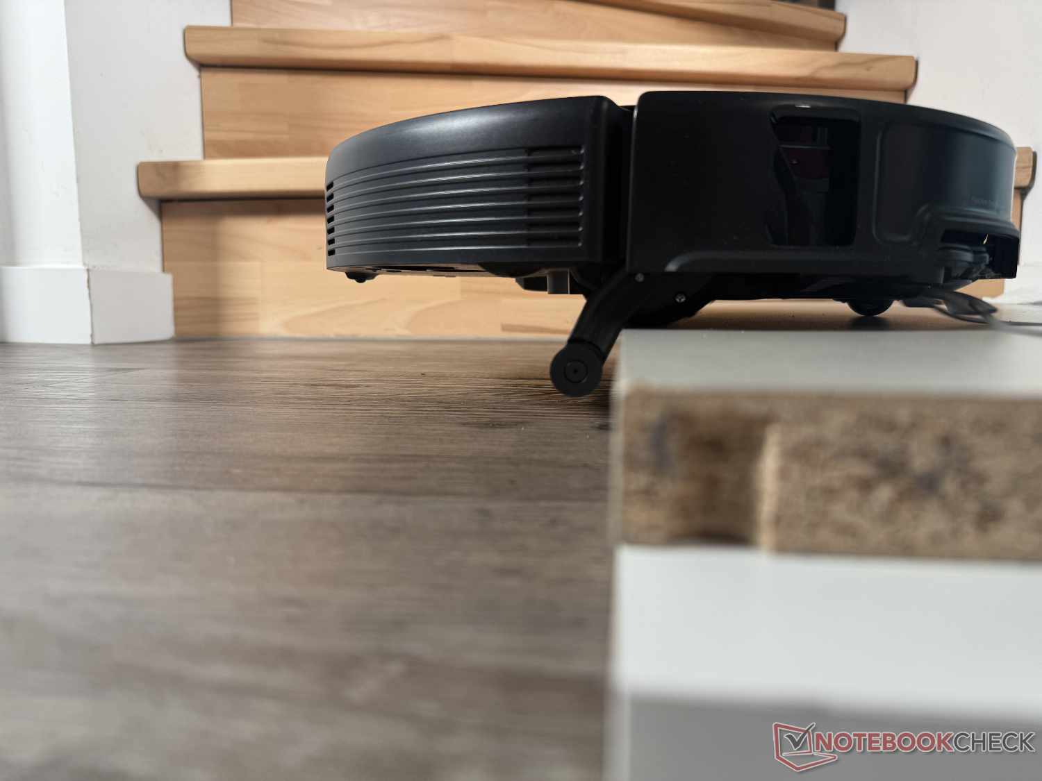 Gracias a su enorme capacidad de escalada de hasta 8,8 cm (en dos pasos), el Roborock Saros 20 puede superar casi cualquier umbral. En la prueba práctica, escaló con éxito un saliente de 90 grados de 4,5 cm de altura, aunque a veces pareciera un poco laborioso. Para ello, extiende sus dos pequeñas patas auxiliares para elevarse primero por delante y luego dejar que le siga la parte trasera.