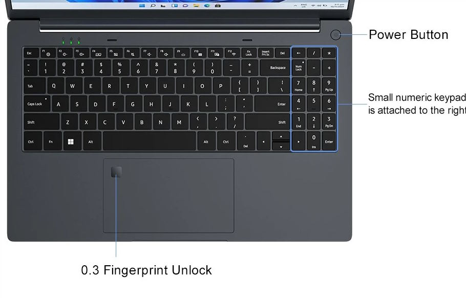 Con un peso de 1,75 kg y un grosor de 1,9 cm, el Ninkear A15 Air cuenta con una pantalla de 15,6 pulgadas con una resolución de 1080p, una frecuencia de actualización de 60 Hz y una cobertura de gama del 45% NTSC (~65% sRGB). También ofrece dos puertos USB-C (ambos con capacidad de salida de vídeo), una interfaz HDMI, un puerto Ethernet y un lector de tarjetas de memoria. Otras características destacables son la compatibilidad con Wi-Fi 5, un sensor de huellas dactilares y una webcam integrada.