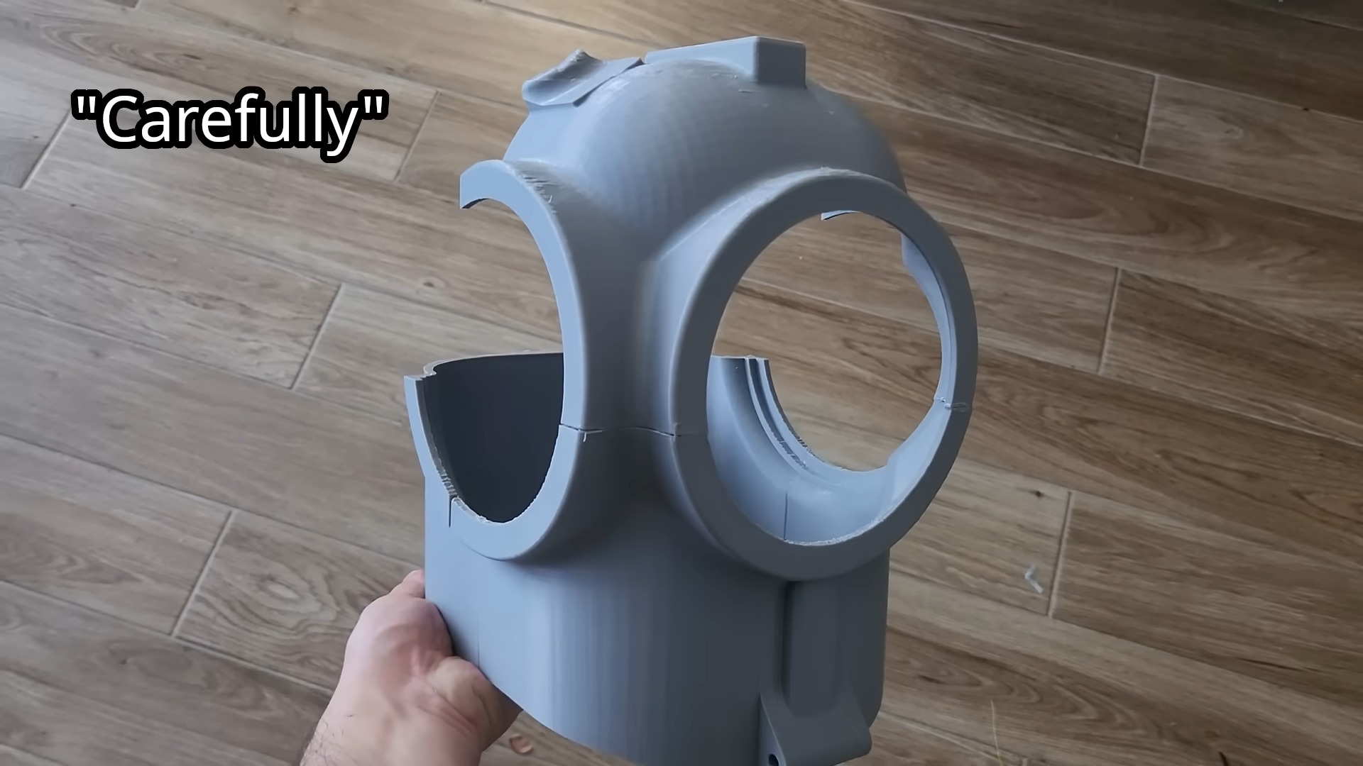 El modelo 3D del casco está disponible gratuitamente en Thingiverse. Dado que no hay dos cabezas del mismo tamaño, el fabricante recomienda calcular sus dimensiones por adelantado utilizando una simple maqueta de cartón - lo que él llama irónicamente "diseño asistido por cartón" El casco en sí se imprimió en plástico ABS, con segmentos individuales pegados entre sí y luego reforzados con fibra de vidrio y resina epoxi. Una nota crítica: la resina de poliéster es un no-go aquí, ya que disuelve el ABS. Después, lo remató con pintura y una capa de laca.