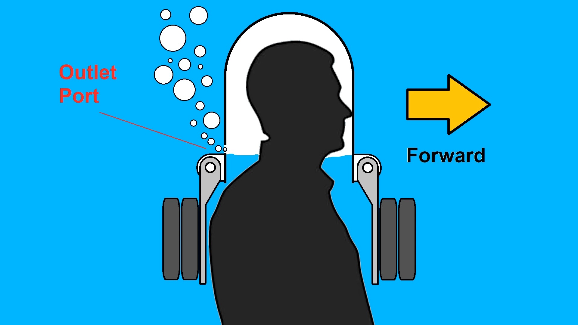El aire es suministrado por un compresor eléctrico sin aceite montado en un flotador junto a un inversor de potencia y paquetes de baterías, manteniendo todo el conjunto a flote en la superficie. El fabricante desaconseja encarecidamente el uso de compresores que funcionen con gas, ya que los gases de escape, como el monóxido de carbono y el dióxido de carbono, podrían viajar directamente por la manguera de aire hasta los pulmones, con consecuencias potencialmente mortales. El aire contaminado con aceite también plantea sus propios riesgos graves para la salud, por lo que sólo deben utilizarse unidades eléctricas sin aceite. La conexión al casco se realiza a través de un racor SAE estándar de 1/4 de pulgada.