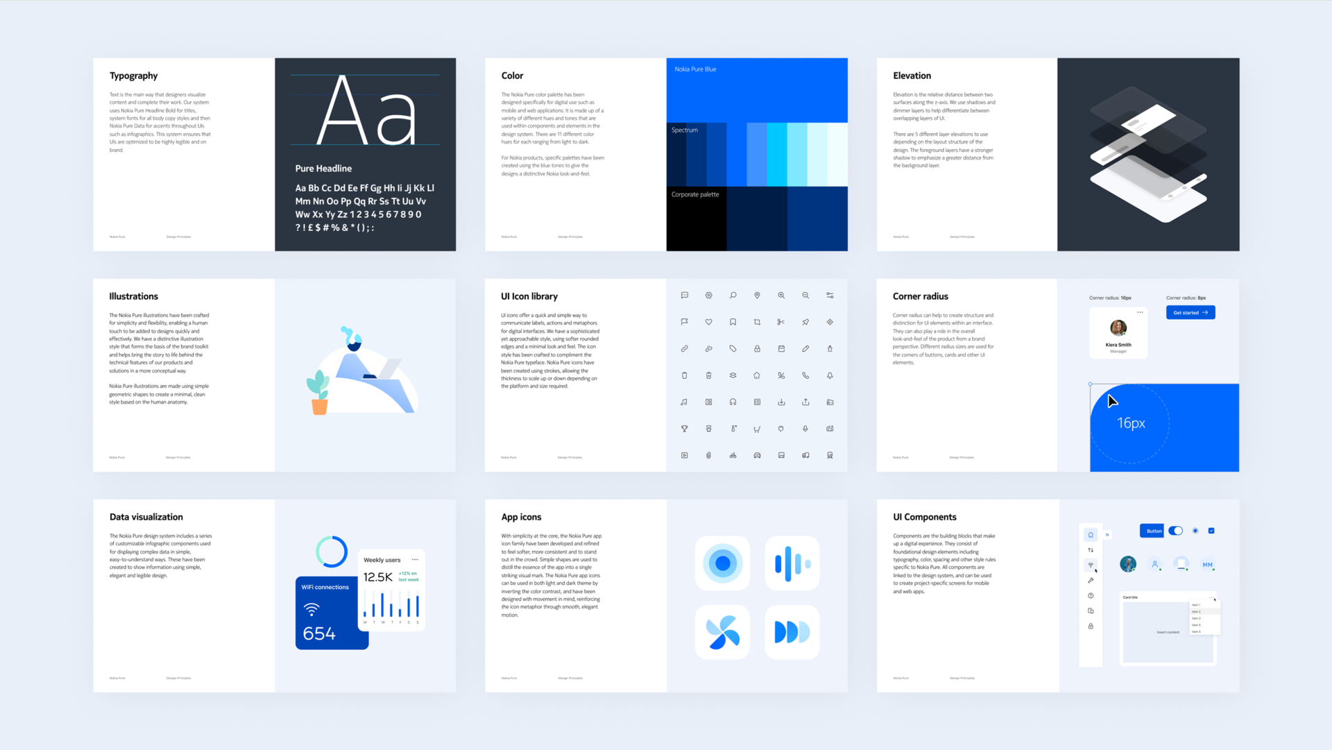 En cualquier caso, Nokia Pure debería servir como lenguaje de diseño en todas las aplicaciones, servicios en línea y sitios web de Nokia. Como muestran las imágenes de presentación enlazadas a continuación, Nokia Pure se basa en un diseño apagado con varios tonos de azul y gris. Nokia también ha simplificado el diseño de los iconos, así como los botones y los elementos de control. Además, Nokia Pure presenta una única fuente homónima sans serif en varios pesos. Además, el lenguaje de diseño utiliza formas geométricas simples para los iconos y rectángulos redondeados con radios de esquina de 16 píxeles.