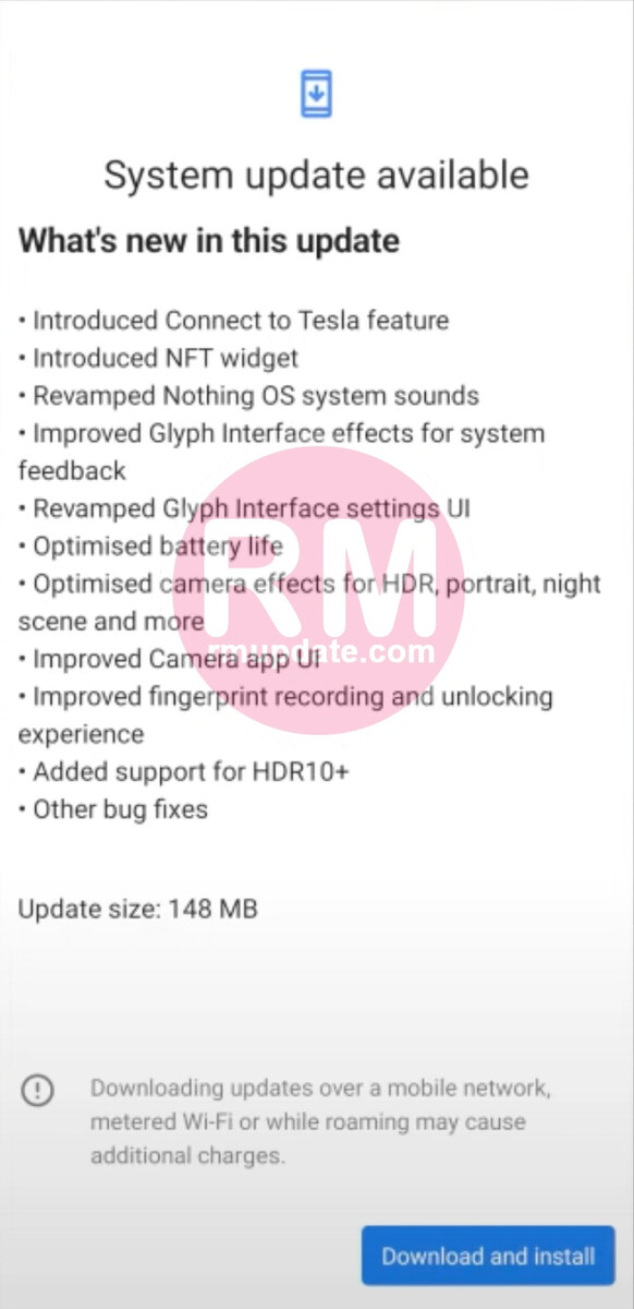 Como muestra la captura de pantalla siguiente, la actualización ocupa poco más de 100 MB, aunque el tamaño exacto de los archivos varía según el dispositivo. A pesar de ser una descarga relativamente pequeña, la actualización contiene diez cambios importantes, además de "otras correcciones de errores". Además, el Nothing Phone (1) ha recibido el parche de seguridad de julio de 2022 Android, del que carecía nuestra unidad de revisión. En cualquier caso, la actualización introduce la prometida funcionalidad "Conectar con Tesla" de Nothing, así como los siguientes cambios: