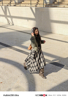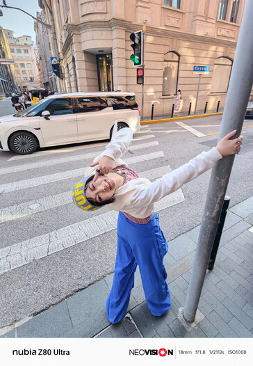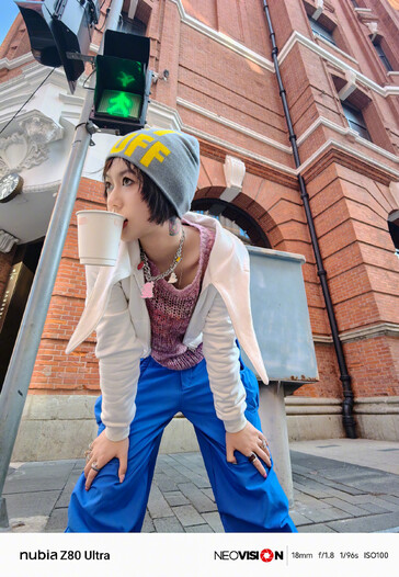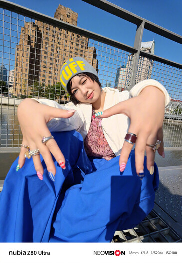 La cámara ultra gran angular puede tener un sensor significativamente mayor, pero con una distancia focal de 18 mm, no captura un campo de visión tan grande como su predecesora. Las fotos de muestra no son especialmente informativas, ya que Nubia tomó estas imágenes en condiciones relativamente poco exigentes. Los tonos de piel de la modelo varían entre las imágenes, lo que indica un balance de blancos moderadamente fiable, pero estas imágenes también muestran colores tenues y contrastes de aspecto natural