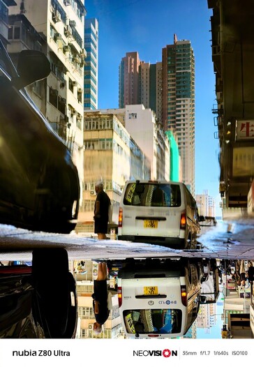 Las primeras fotos de muestra tomadas con la cámara principal de 35 mm del Nubia Z80 Ultra están destinadas principalmente a demostrar la "perspectiva natural" de la cámara. Nubia también adopta un enfoque comedido en el procesamiento de imágenes, centrándose en colores naturales en lugar de sobresaturados y una relación de contraste relativamente alta. Algunas de las fotos de muestra aparecen borrosas, pero los espectadores no deben sacar conclusiones sobre la baja resolución de las imágenes compartidas