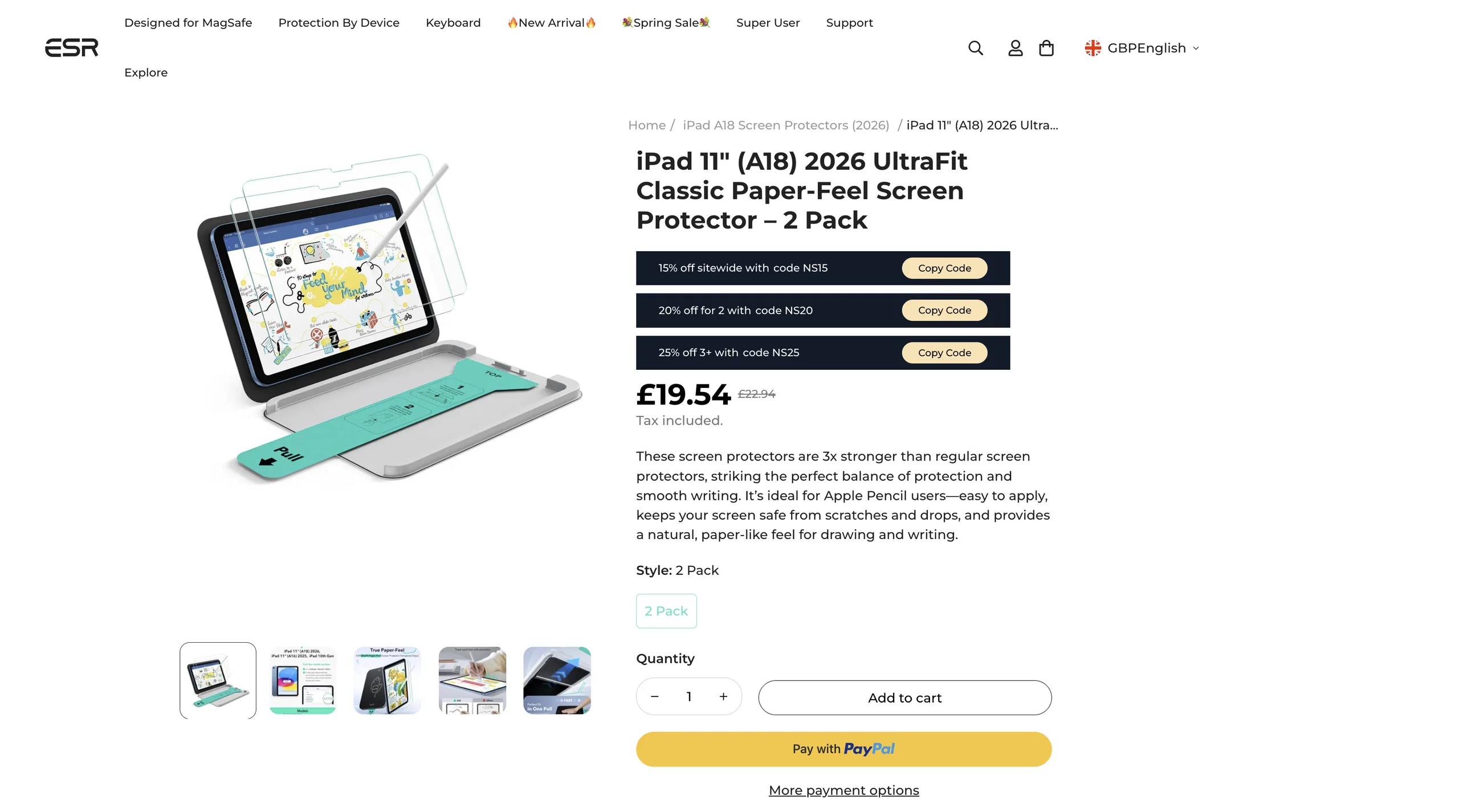 Según ESR Techtambién está a punto de llegar un iPad básico renovado. A pesar de que todavía no se ha producido ningún anuncio público por parte de Apple, ESR Tech ya está anunciando protectores de pantalla "con tacto de papel" para el iPad de 12ª generación. Aunque todavía están en línea en el momento de la publicación, hemos incrustado imágenes a continuación para cuando ESR Tech retire su anuncio.