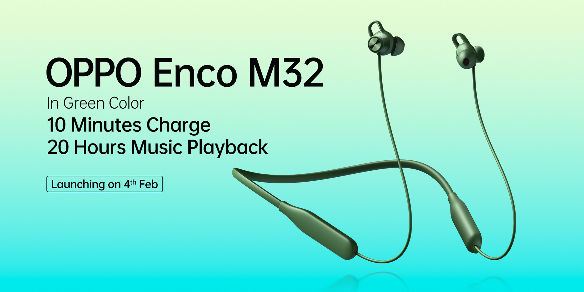 El fabricante de equipos originales tendrá una tercera novedad para sus seguidores indios en un par de días, que consiste en el Enco M32. Estos auriculares inalámbricos neckbuds ya están disponibles en la India, aunque en negro negro. Sin embargo, sus opciones alternativas acabadas en un verde oscuro también será una opción en este mercado a partir del 4 de febrero