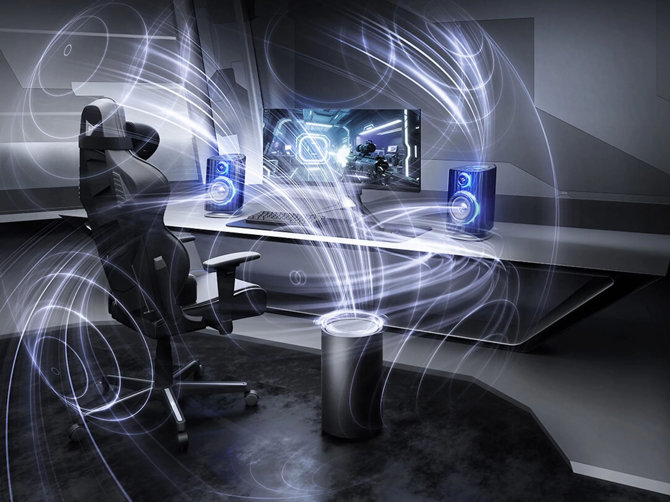 Los nuevos sistemas de altavoces OXS están pensados para colocarse sobre un escritorio, por lo que deberían poder utilizarse con un PC de juegos o consolas como la PlayStation 5 y la Xbox Serie X/S. Los Thunder Duo Max son la versión superior y vienen con un subwoofer inalámbrico, que debería ofrecer unos graves más potentes. Por otro lado, los Thunder Duo X son un sistema de 5.1.2 canales con altavoces de cuello como satélites, por lo que los satélites se mueven junto con la silla de juego.