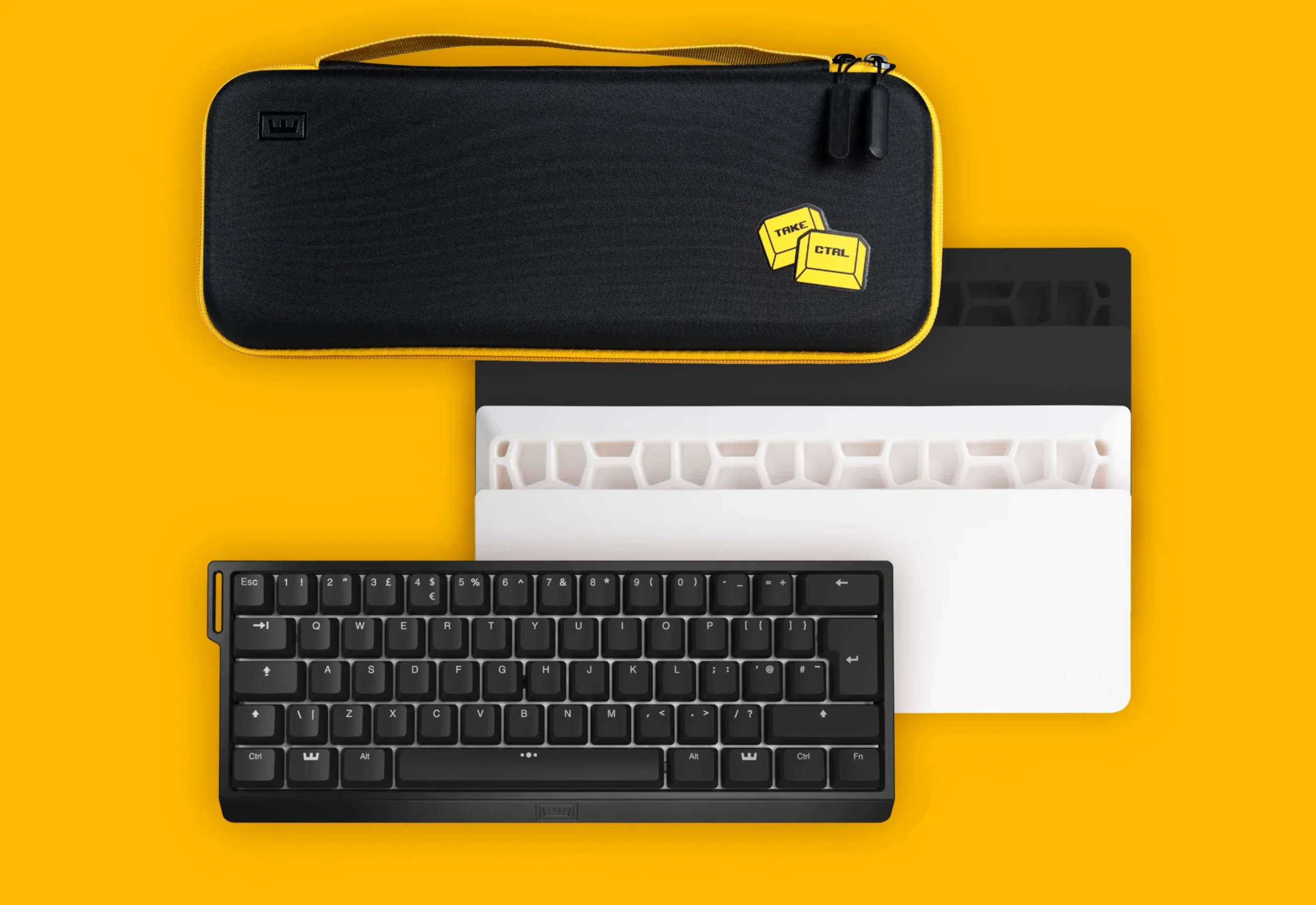 La funda de transporte gratuita que se obtiene con el Wooting 60HE para el Black Friday es muy parecida a la funda de transporte que venía con el Iqunix EZ63 que revisamos anteriormente. El estuche de viaje de Wooting sólo está disponible en negro con detalles amarillos, a juego con la correa de stock del 60HE, y está fabricado con una carcasa dura de EVA con un interior de terciopelo suave para que anide el teclado. Al igual que el propio 60HE, la funda es explícitamente compatible con otros teclados 60% "de dimensiones similares"