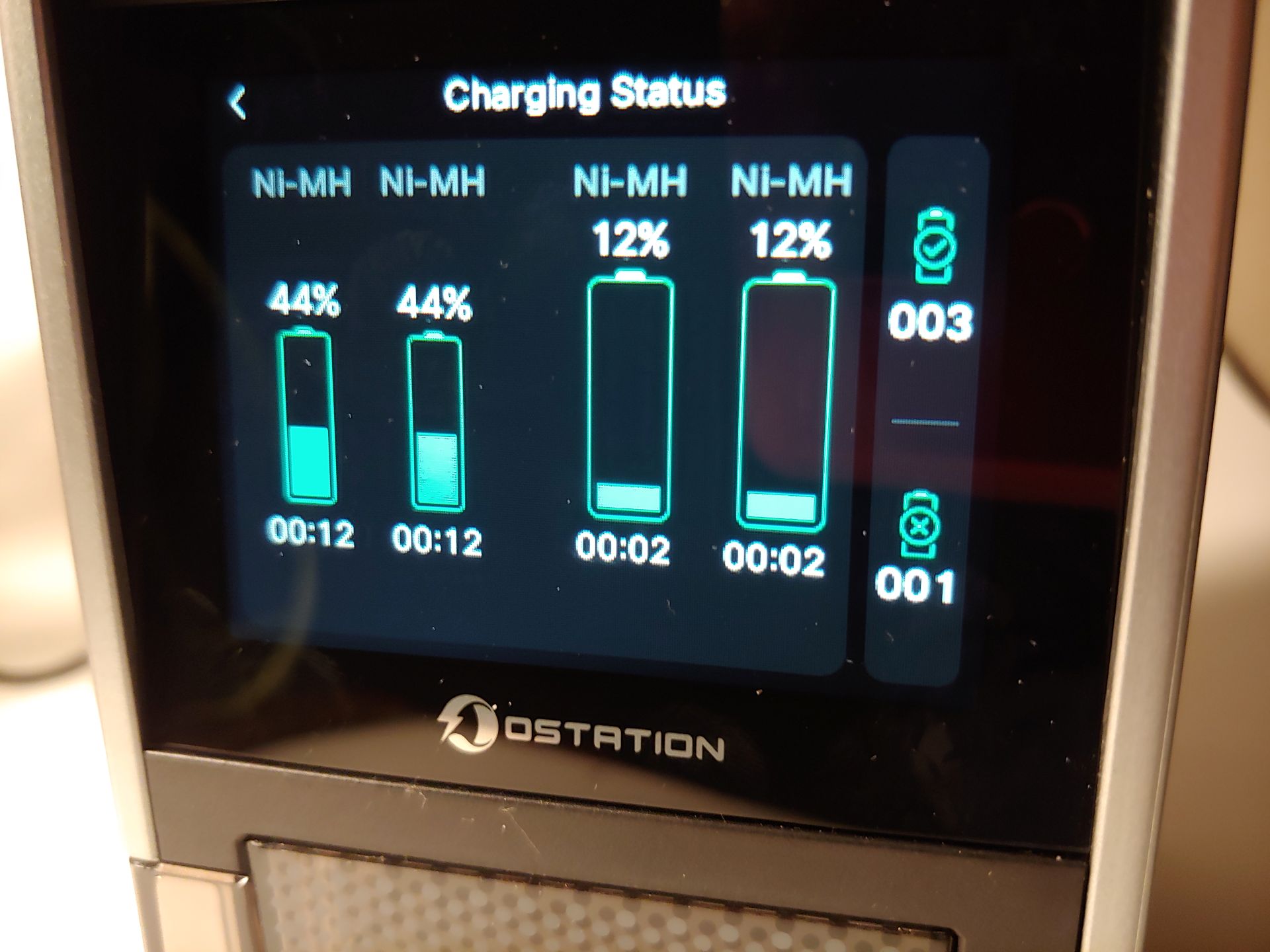 El Ostation 2 Pro cargó dos pilas Ni-MH AA de 2.200 mAh del 1% al 99% en unos 40 a 48 minutos, y del 99% al 100% tardó otros 21 minutos durante las pruebas. Dos pilas Ni-MH AAA de 950 mAh cargaron del 1% al 99% en unos 50 minutos, y del 99% al 100% tardaron otros 20 minutos. Dado que la unidad sólo carga un máximo de dos pilas AA y dos AAA a la vez, una carga máxima de 12 pilas AA y 12 AAA agotadas tardará más de seis horas en cargarse.