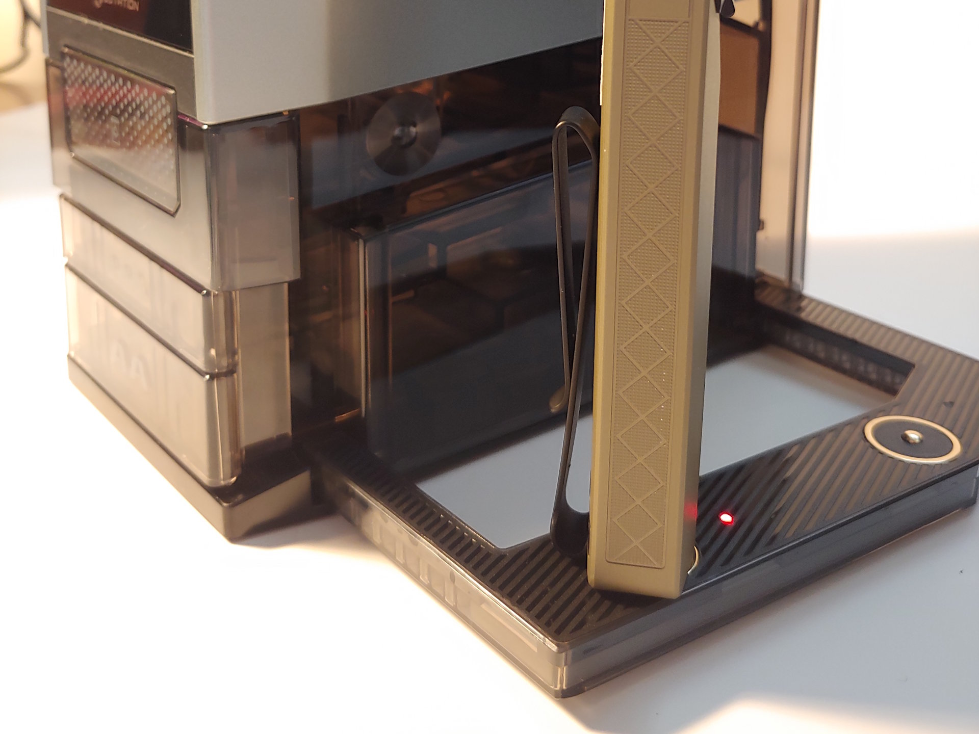 El cargador tiene un diseño de torre. Las pilas se cargan por la parte superior, mientras que las cargadas y las malas se vierten en bandejas situadas en la parte delantera. La máquina gira durante varios minutos cada vez que se pone en marcha para comprobar las pilas en los alimentadores y los pares de carga para su análisis y carga. En el interior de la máquina pueden almacenarse hasta 12 pilas cargadas de cada tipo, y las bandejas AA y AAA están diseñadas para expulsar dos pilas a la vez cada vez que se abren. La bandeja para pilas malas no tiene este límite.