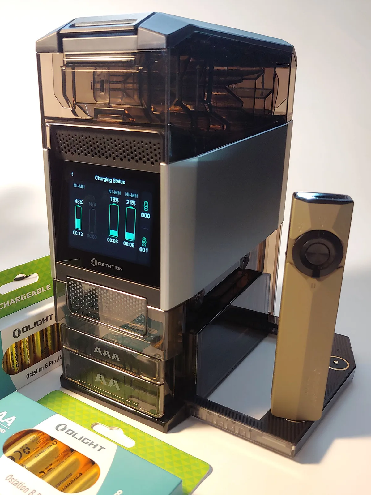 El Ostation 2 Pro ofrece carga automática de hasta 12 pilas AA y 12 pilas AAA Ni-MH. También carga pilas y linternas Olight Ecolast Li-ion AA.David Chien (traducido por DeepL / Ninh Duy) Publicado 🇺🇸 🇫🇷