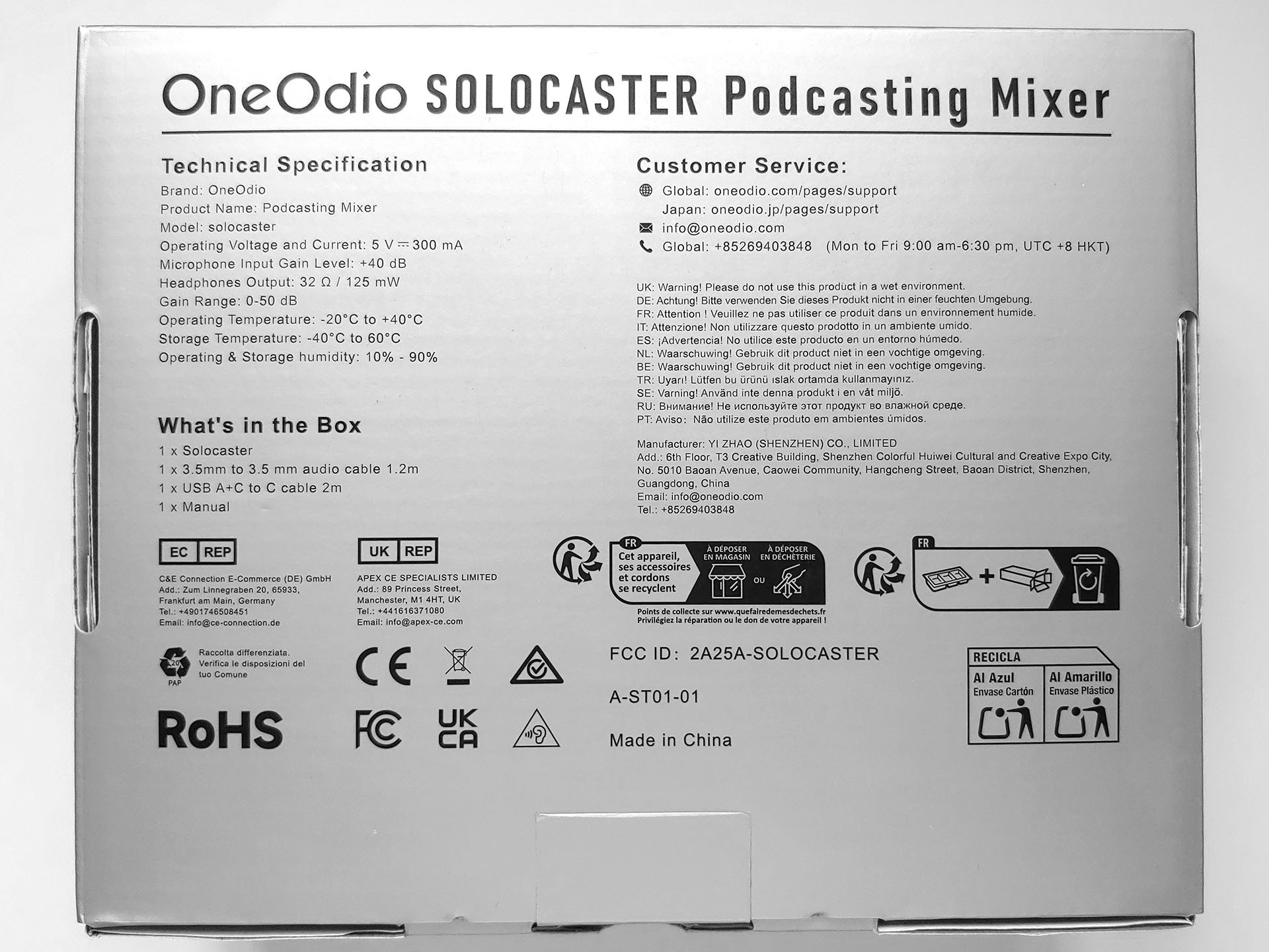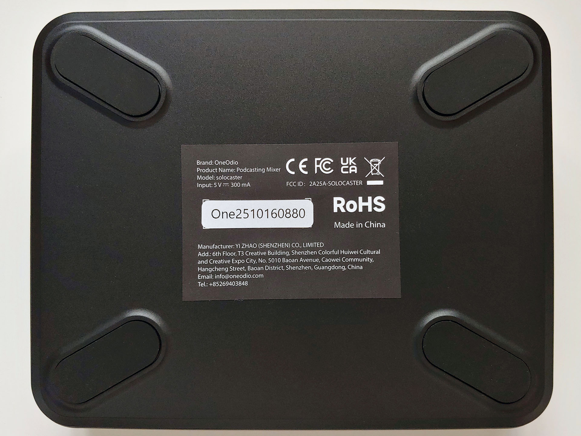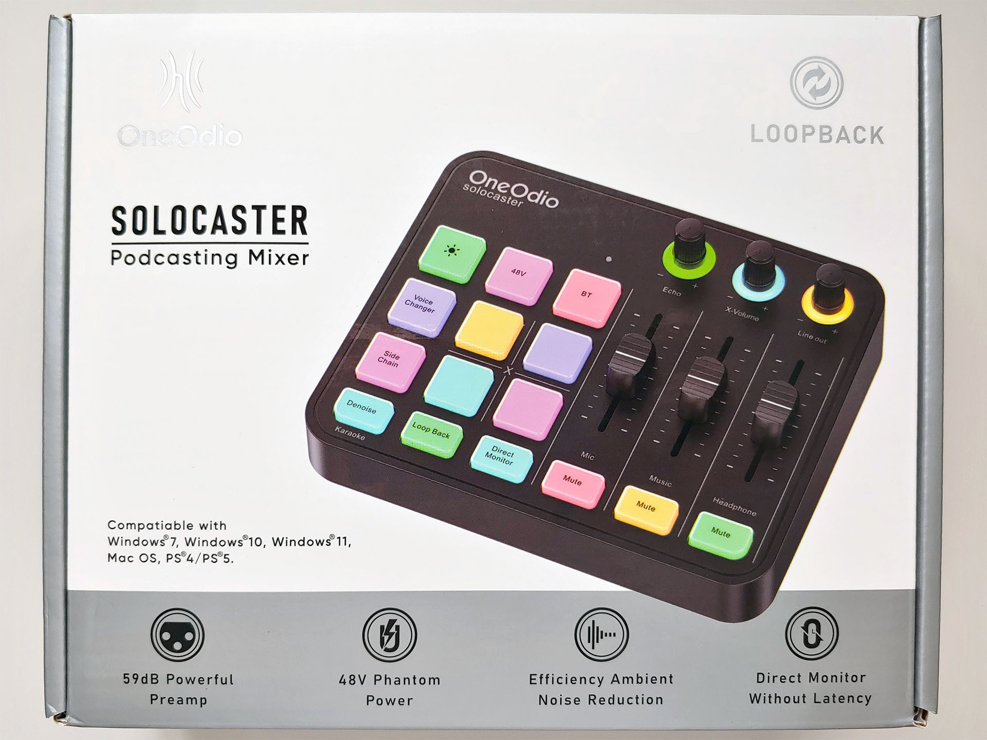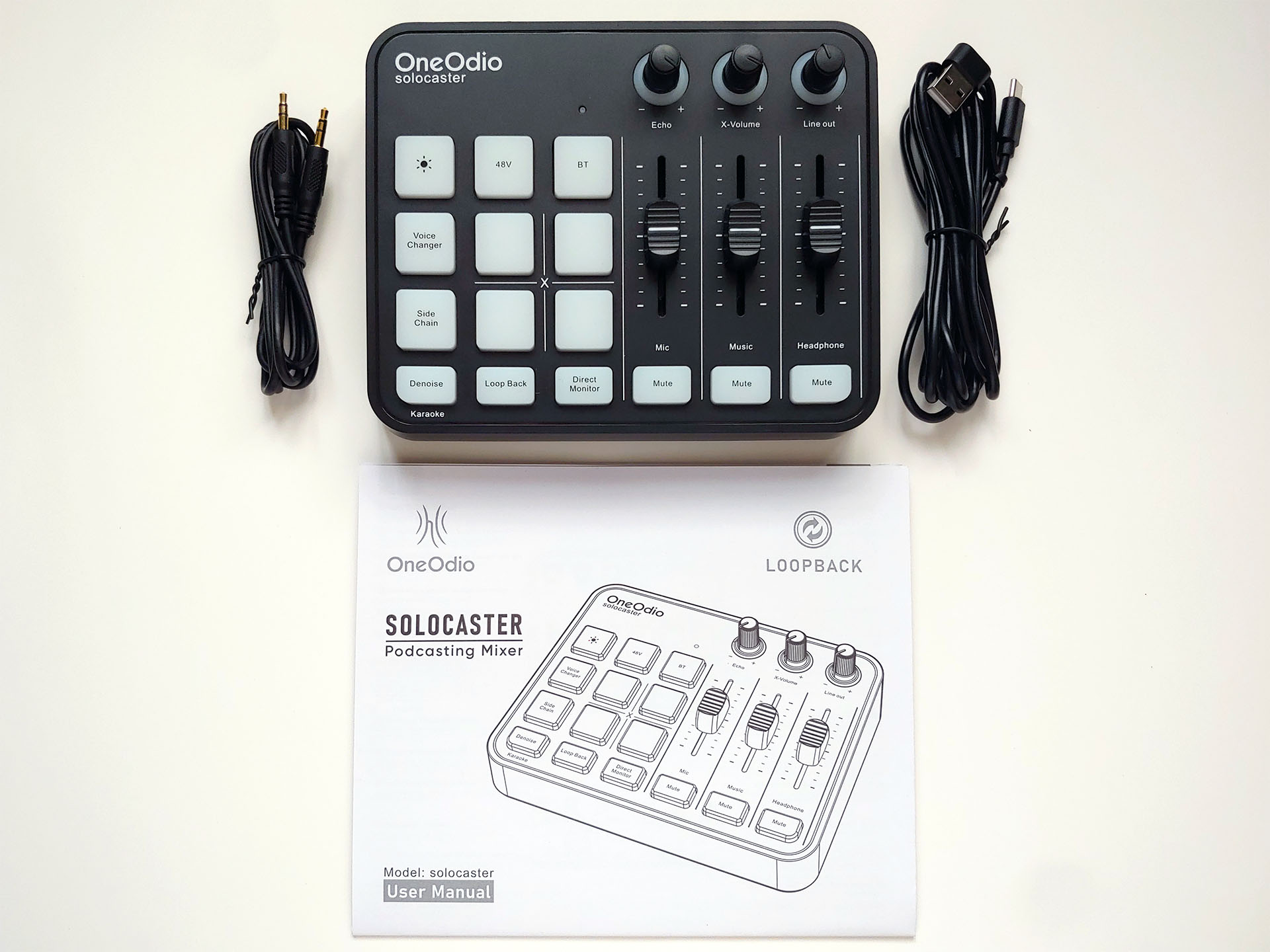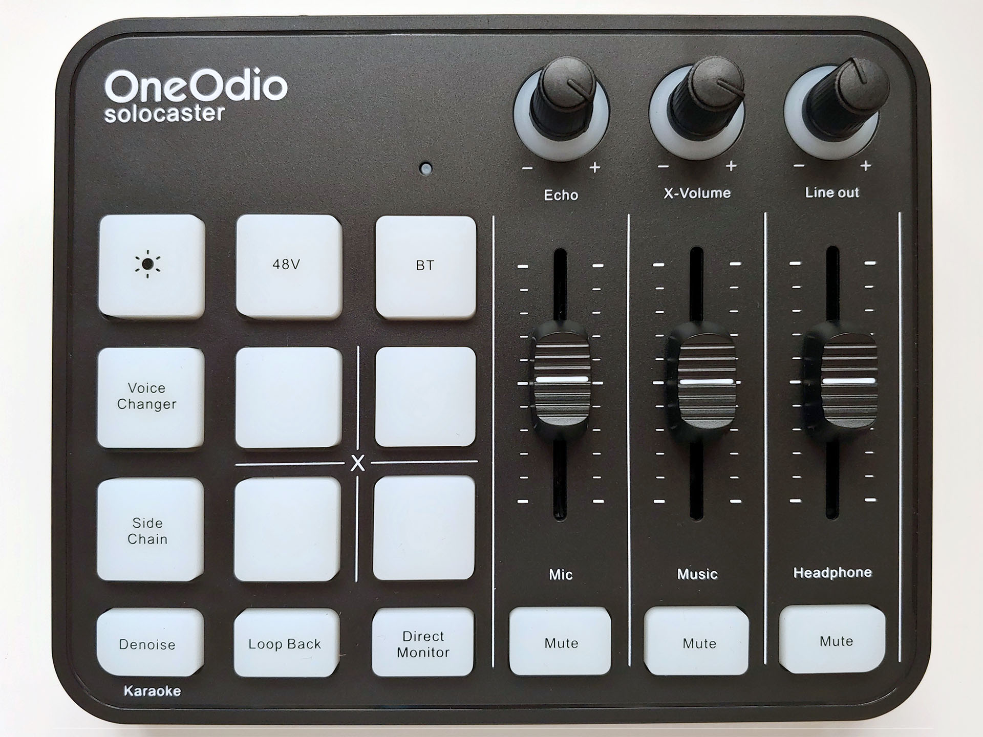 El Solocaster de OneOdio apareció como dispositivo de sonido en Windows y proporcionó un audio mezclado muy utilizable con un ruido de fondo suficientemente bajo (~-50 a -60 dB) para su uso en aplicaciones de streaming como OBS, con la esperada latencia fácilmente corregible. Cuando se emparejaba con micrófonos baratos con una calidad de audio decente y un rechazo del sonido fuera del eje, como la Tascam, la salida del mezclador en salas silenciosas podía utilizarse sin más procesamiento del sonido.