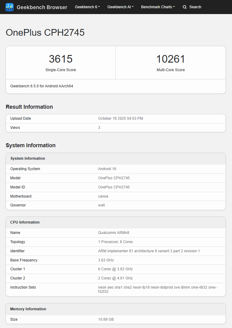 Cabe señalar que estas puntuaciones no alcanzan el diseño de referencia de Qualcomm y el RedMagic 11 Pro. Potencialmente, esto podría atribuirse a que el OnePlus 15 probablemente ejecuta un software de pre-lanzamiento que no está totalmente optimizado. Además, los Dispositivos de Referencia de Qualcomm tienden a superar a todos los smartphones de venta al público que utilizan los mismos conjuntos de chips. Por cierto, Geekbench confirma que el OnePlus 15 partirá también con 12 GB de RAM. Si su predecesor sirve de algo, entonces OnePlus también ofrecerá una segunda configuración de memoria con al menos 16 GB de RAM a su disposición.