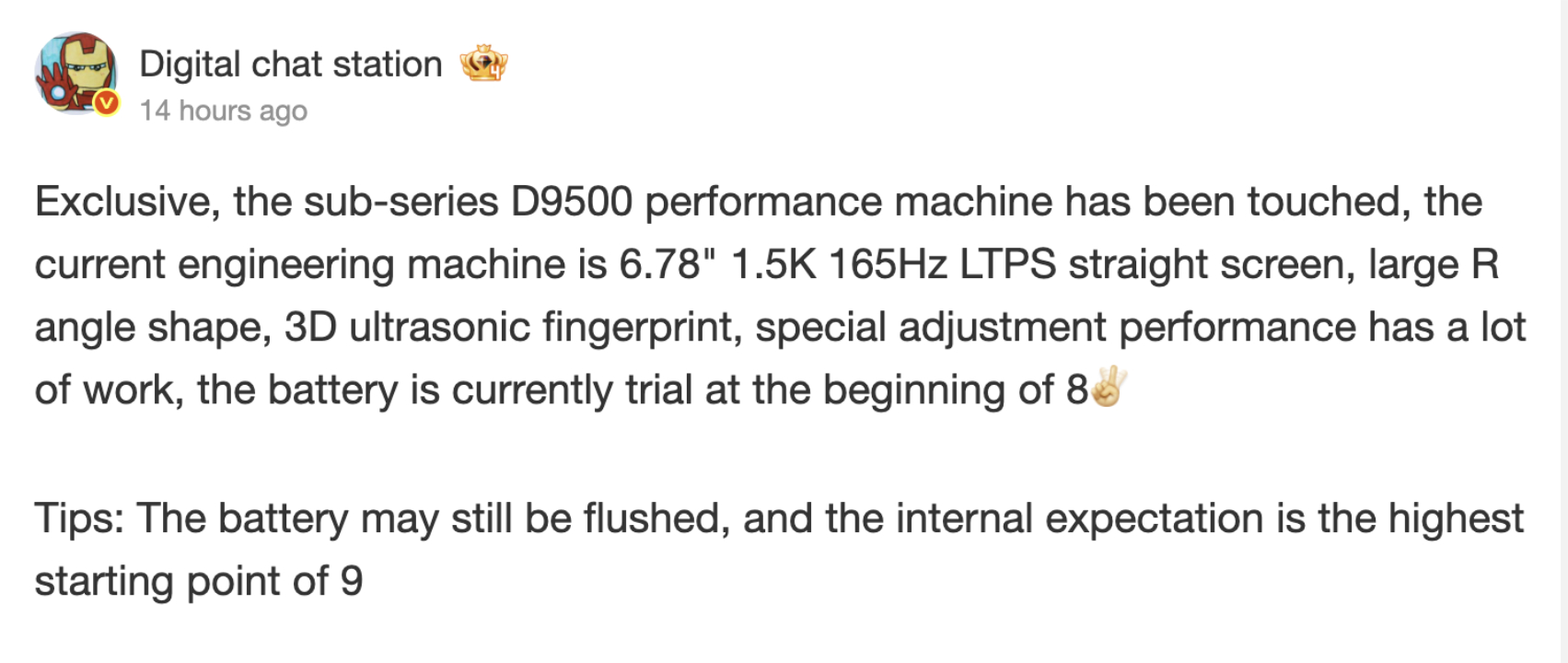 Como es habitual, el filtrador no ha nombrado directamente el dispositivo. Sin embargo, el pensamiento actual se inclina hacia la noción de que Digital Chat Station está insinuando el rumoreado Ace 6 Ultra en lugar de una expansión de la naciente serie Turbo de OnePlus. Dejando a un lado el nombre, Digital Chat Station afirma que OnePlus está desarrollando un smartphone con la "variante de rendimiento" del MediaTek Dimensity 9500 de MediaTek.