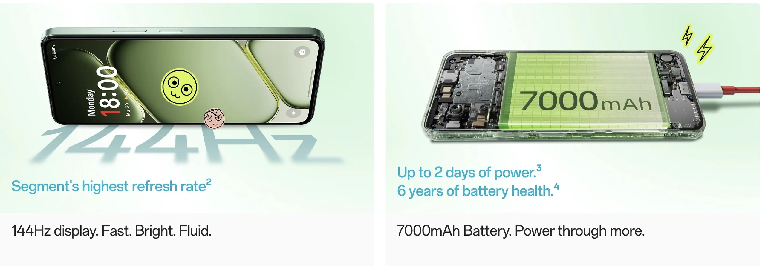 El teléfono estará propulsado por el Dimensity 7400 Apex, un chipset octa-core de MediaTek basado en un proceso de 4 nanómetros. OnePlus reveló que obtiene alrededor de 1,03 millones de puntos en la prueba AnTuTu V11 benchmark, en una variante con 8 GB de RAM y 256 GB de almacenamiento. La compañía afirma que el dispositivo soportará 90 FPS de juego en BGMI y COD Mobile. Mientras tanto, soportará 144 FPS en títulos selectos, incluyendo Subway Surfers.