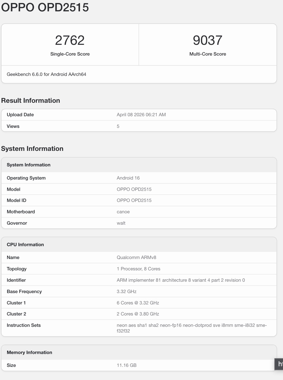 El listado de Geekbench también revela que la tableta ejecuta Android 16. Según una reciente filtraciónel Oppo Pad Mini contará con un panel OLED de 8,8 pulgadas con una relación de aspecto 3:2. También podría contar con una batería de 8.000mAh con carga rápida de 67W. Aparte del Pad Mini, se espera que la compañía presente el Pad 5 Prouna tableta insignia con un chipset Snapdragon 8 Elite Gen 5.