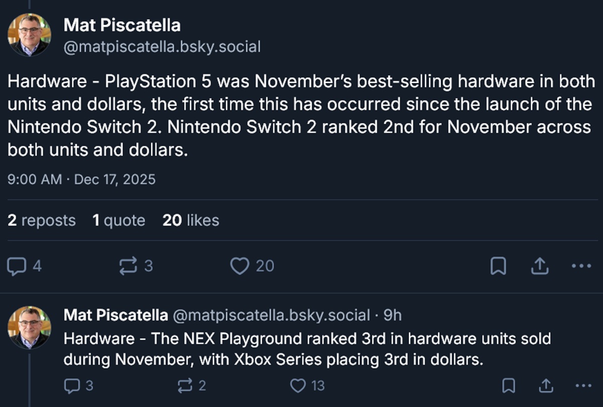 Para añadir contexto a las cifras, Mat Piscatella, de Circana, ofreció teorías sobre el triunfo de la PS5. Advierte a los jugadores de que no reaccionen de forma exagerada ante las menores ventas de Switch 2. El analista señala que la consola portátil sigue siendo la que más rápido se ha vendido desde que se inició el seguimiento. Dicho esto, sugiere que la amplia oferta de lanzamiento puede haber canibalizado las compras potenciales más adelante.