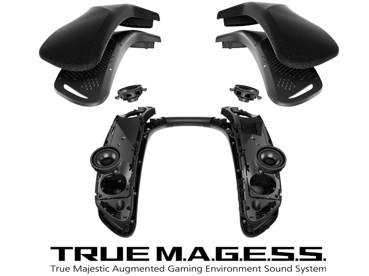 El altavoz del cuello tiene la forma adecuada para ajustarse al cuello. Cuatro transductores de cono de 38 mm producen un sonido envolvente 4.0, con una potencia total del sistema de ocho vatios, para un juego envolvente de hasta nueve horas entre cargas, según Panasonic. También se incluyen dos micrófonos MEMS con cancelación de ruido AI.