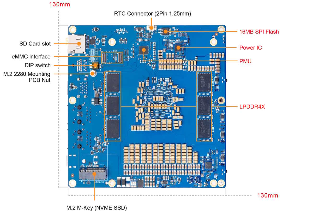 Dependiendo de la configuración, la memoria RAM LPDDR4X tiene una capacidad de 48 o 96 GB. Además, el ordenador monoplaca admite hasta 256 GB de almacenamiento eMMC, así como tarjetas SD y una unidad SSD PCIe. Para la red, hay a bordo dos puertos Gigabit Ethernet y WiFi, y también se puede instalar un ventilador activo. Por último, pero no por ello menos importante, el SBC Orange Pi cuenta con un cabezal GPIO de 40 pines, que puede utilizarse para controlar un motor o una alarma, por ejemplo. Orange Pi aún no ha revelado el precio exacto ni los detalles de disponibilidad.