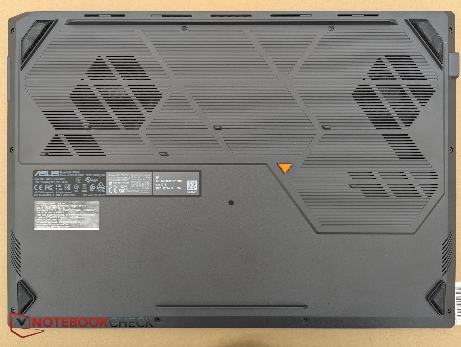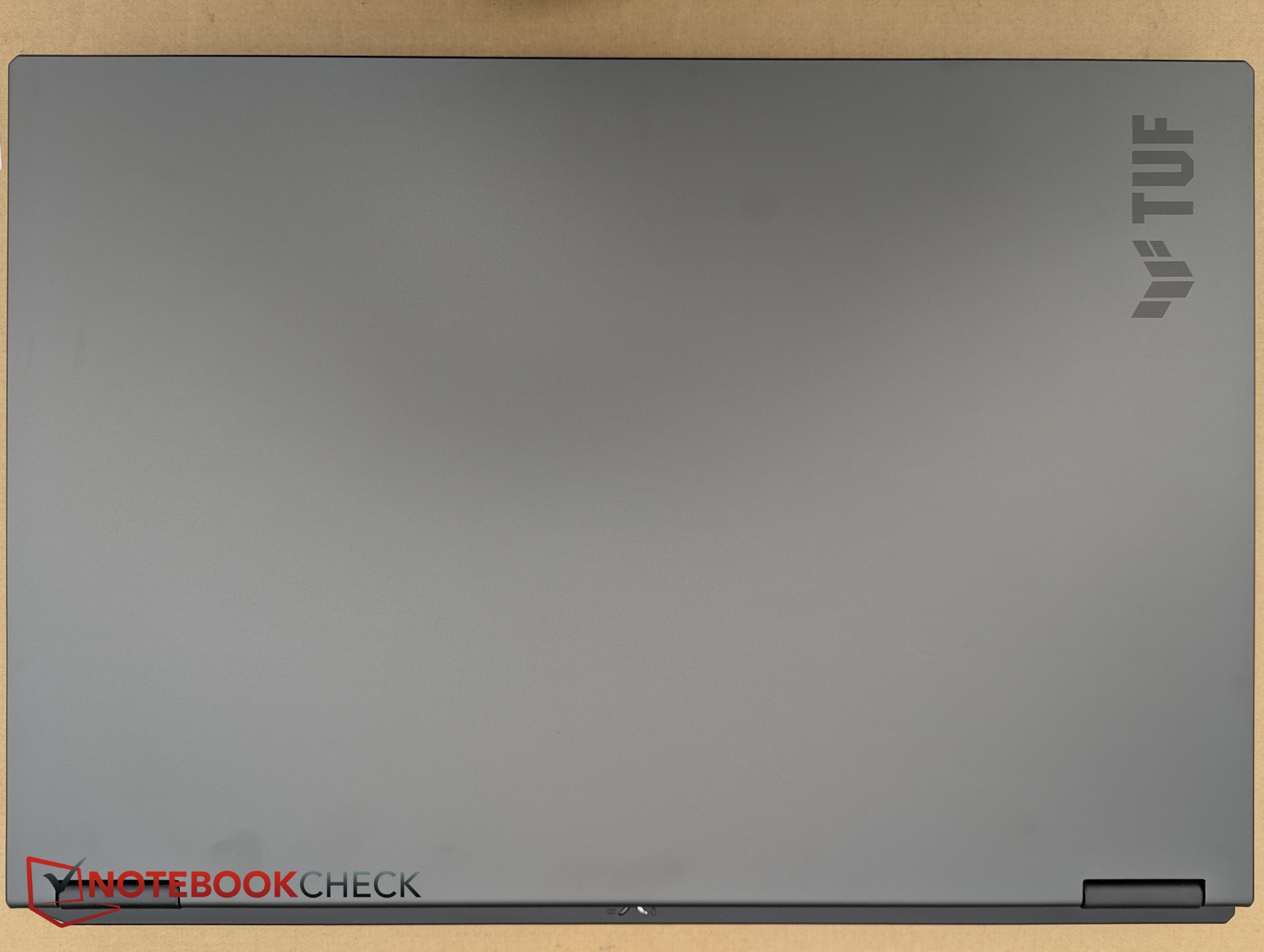 Asus utiliza una carcasa de plástico gris plateado. La base negra no es perfectamente rígida, pero se mantiene estable mientras se teclea. El diseño es discreto, el cuerpo es bastante delgado y, teniendo en cuenta el factor de forma de 18 pulgadas, es relativamente ligero. La tapa se abre 180 grados.