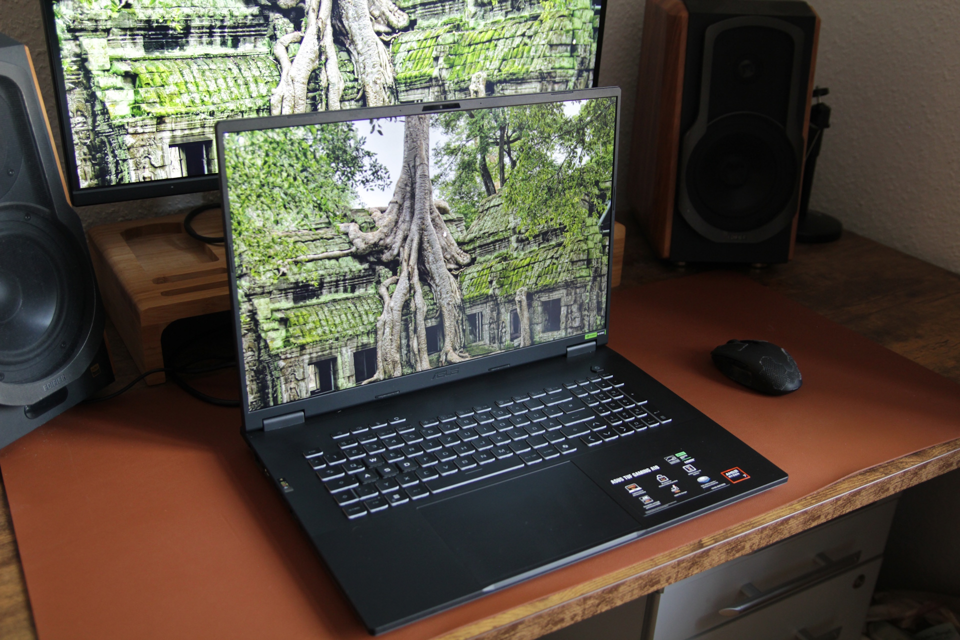 Es interesante lo que Asus ha conseguido con el A18: para ser un portátil de juegos de 18 pulgadas, es relativamente delgado y ligero, con un diseño limpio, una excelente duración de la batería y unos niveles de ruido impresionantemente bajos incluso en el modo Rendimiento. La pantalla nos deja algo indecisos: el panel sRGB de 300 nits no es precisamente emocionante, pero se calibra de maravilla. ¿Está intentando Asus atraer a los creativos a pesar de la marca TUF económica?