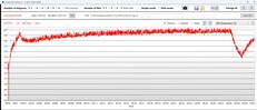 (+) La temperatura máxima en la parte superior es de 39 °C / 102 F, frente a la media de 40.4 °C / 105 F, que oscila entre 21.2 y 68.8 °C para la clase Gaming.